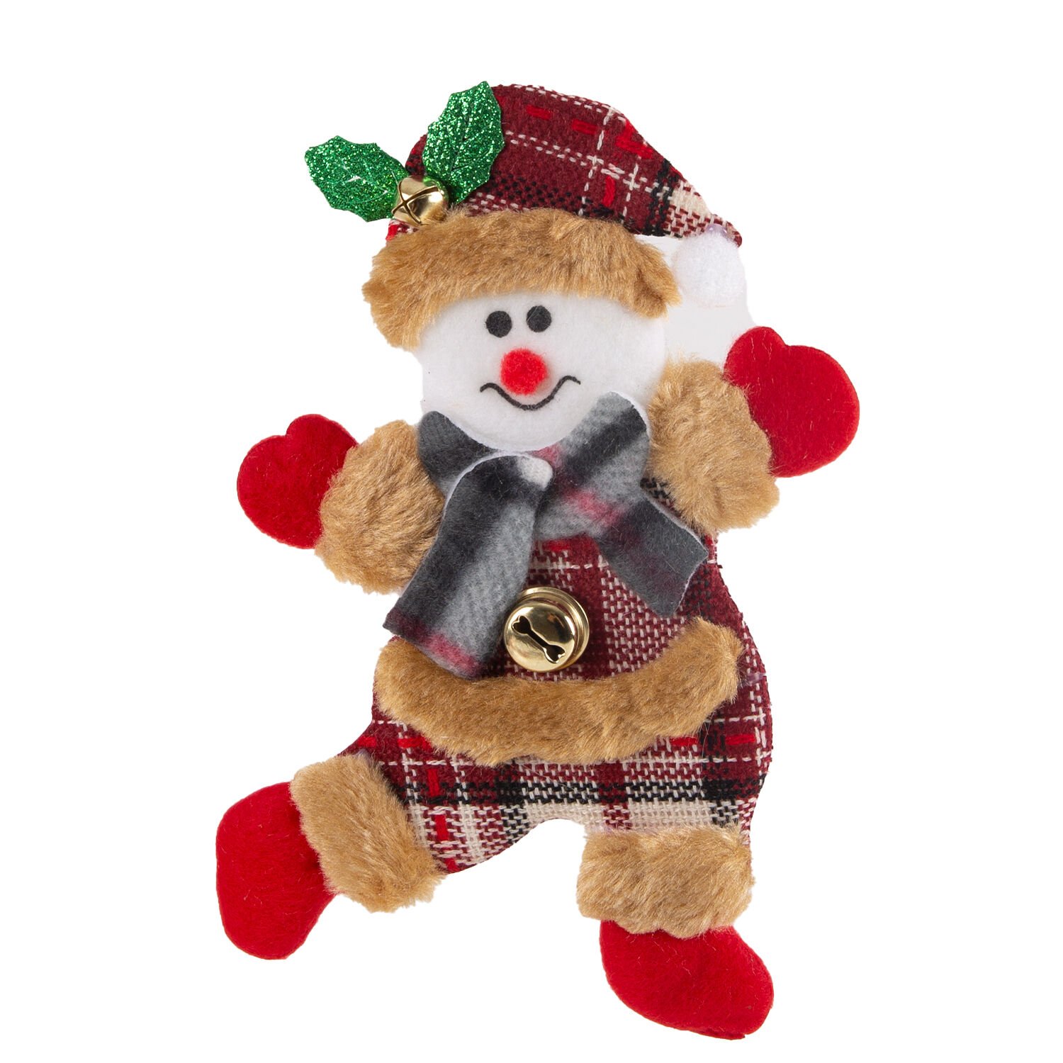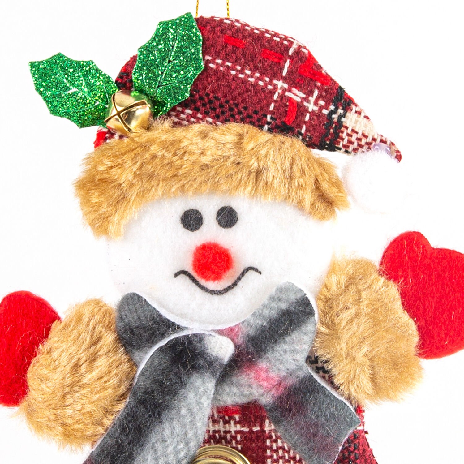 Yılbaşı Ağaç Süsü Kardan Adam Figürlü Çıngıraklı Kahverengi-Kırmızı 12,5 x 19 Cm.