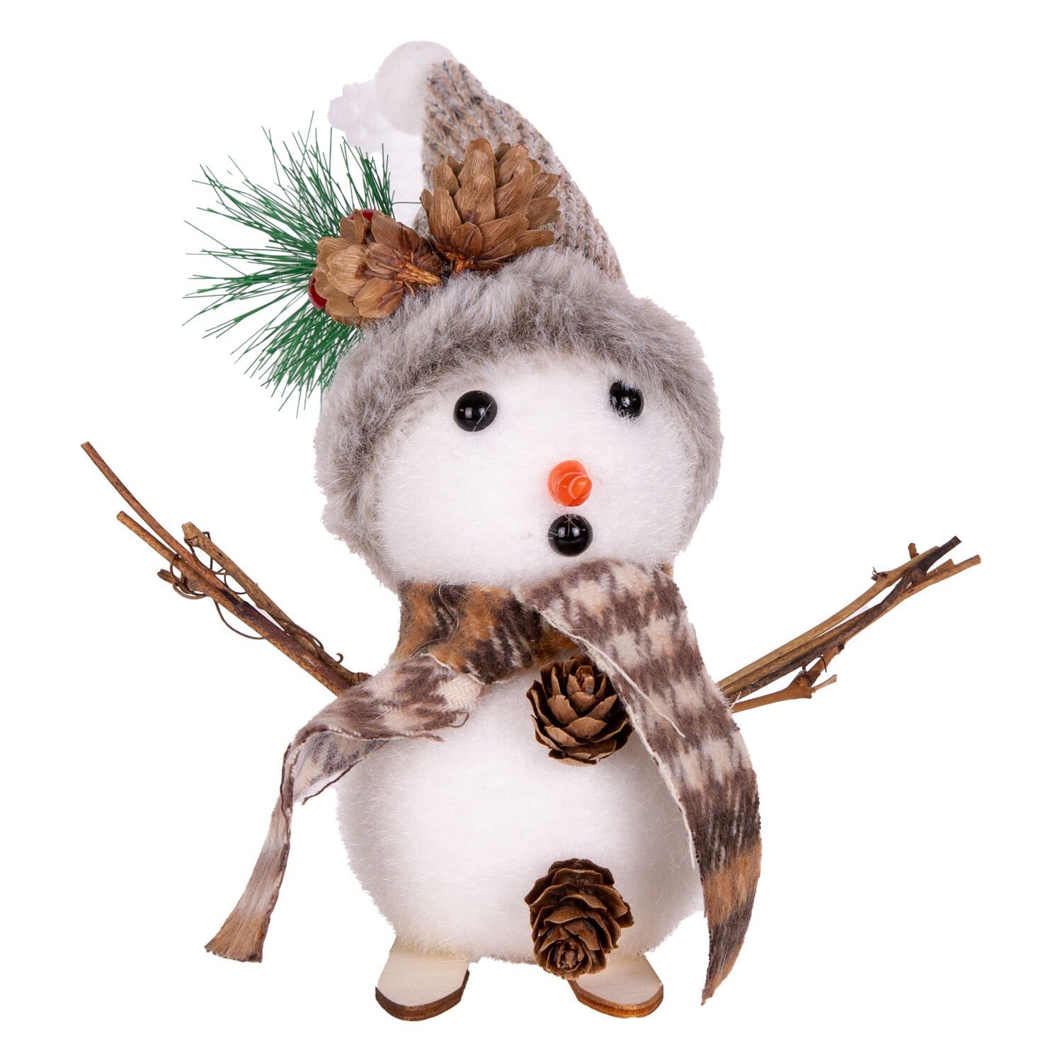 Kahverengi (kayak takımları) ve beyaz (kardan adam gövdesi) tonlarının birleşimi, süse doğal, rustik ve kış temalı sıcak bir hava katar. -