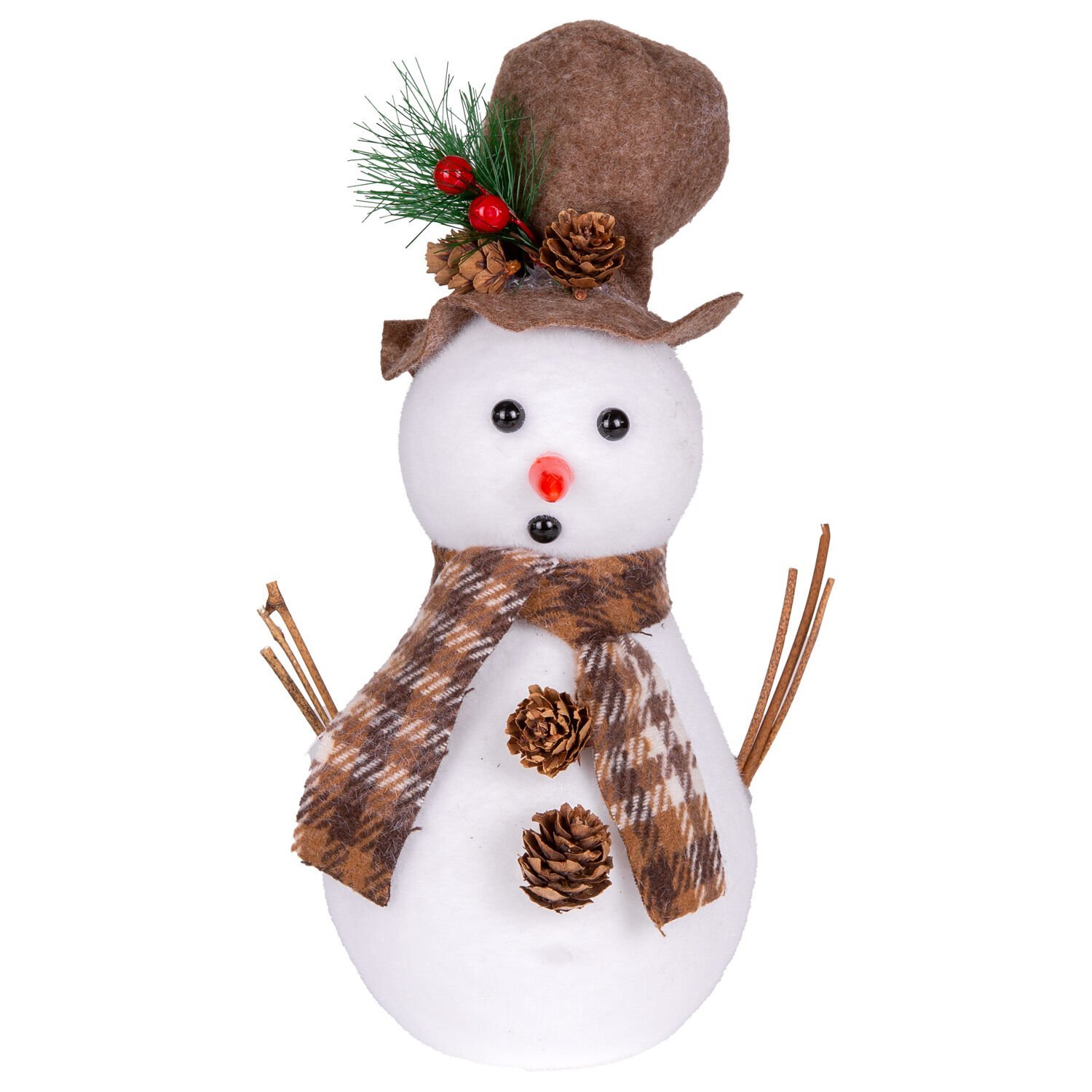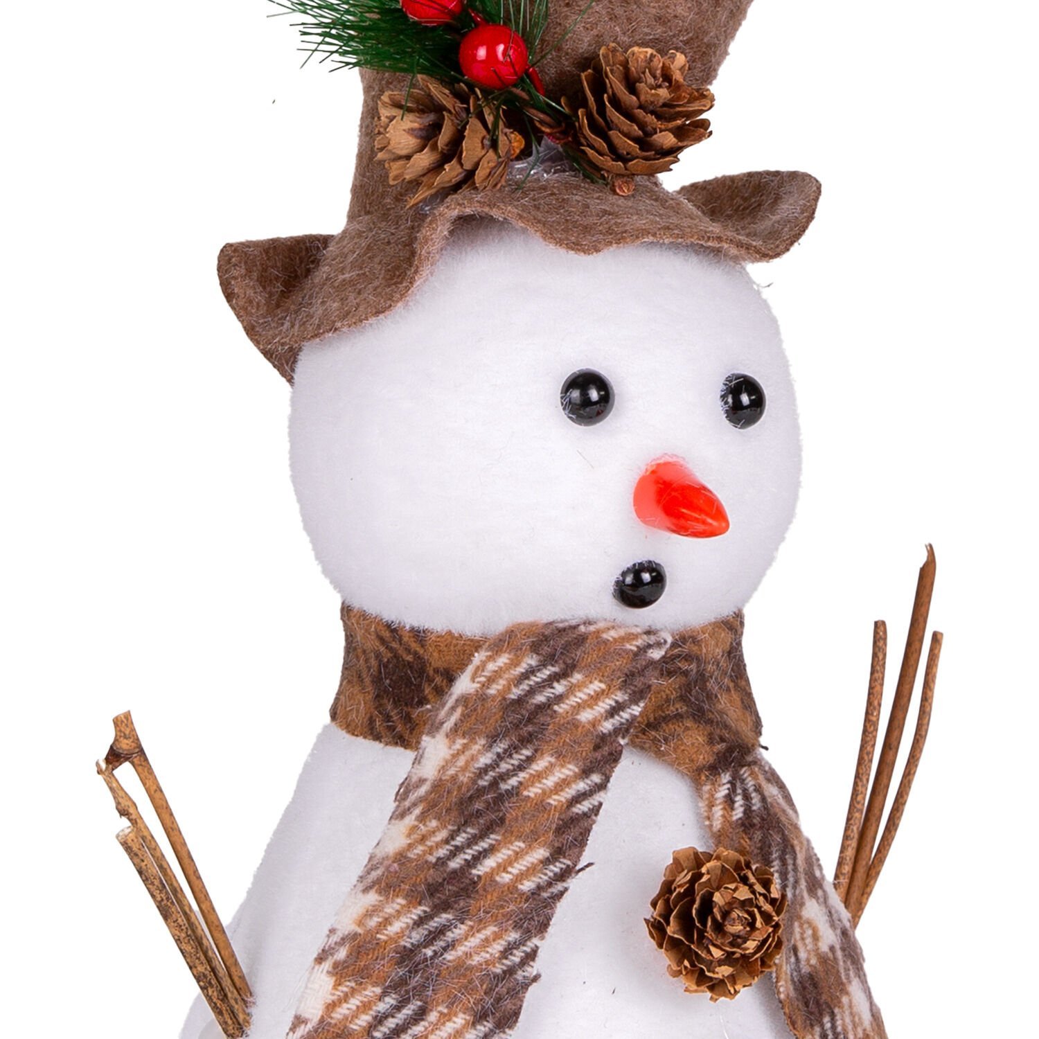 Yılbaşı Süsü, Kardan Adam, Yılbaşı Dekorlu, Ekose Atkılı, Kahverengi-Beyaz - 15x13x26 cm
