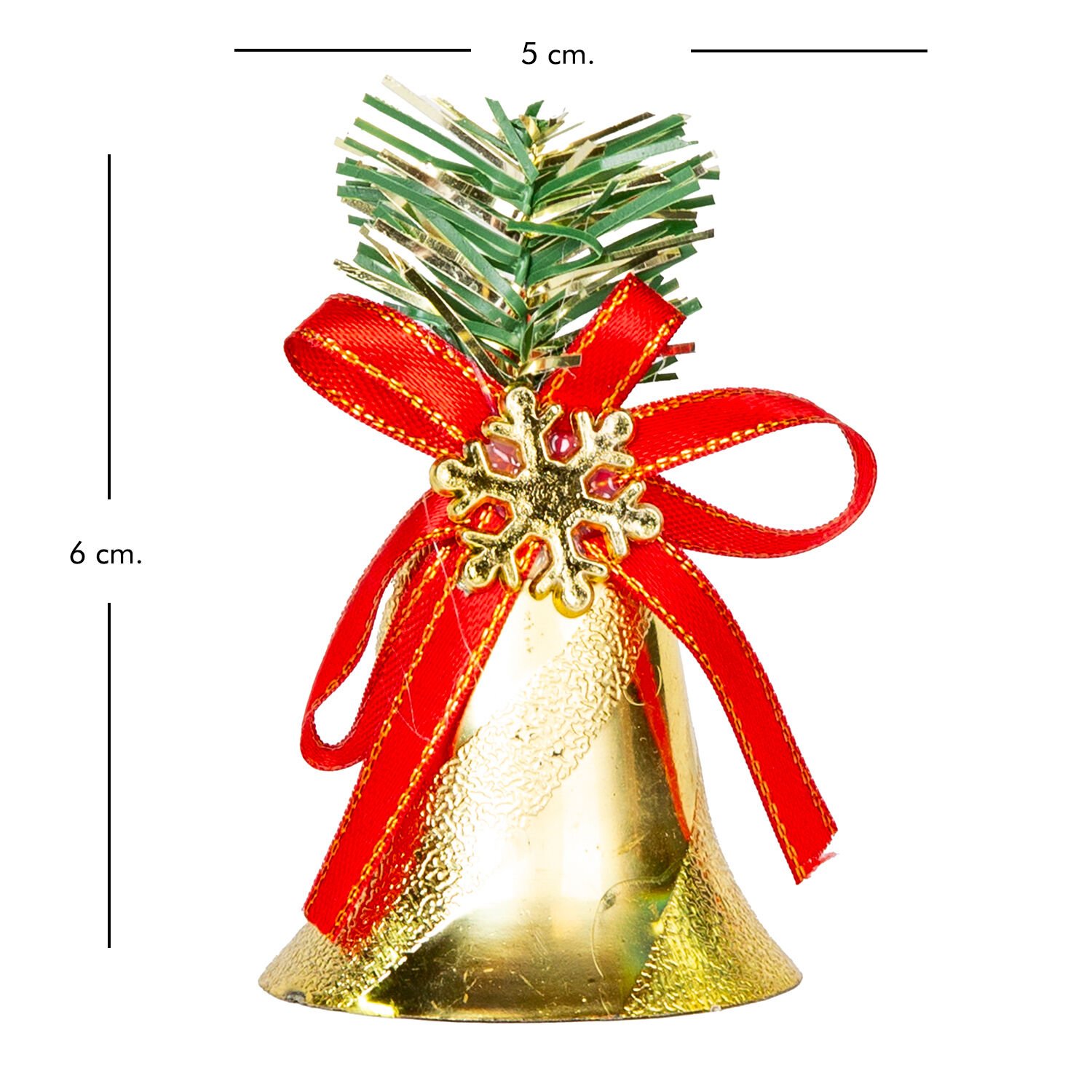 Yılbaşı Süsü, Kurdeleli Çan, Dore - 6'lı Paket, 5x6 cm
