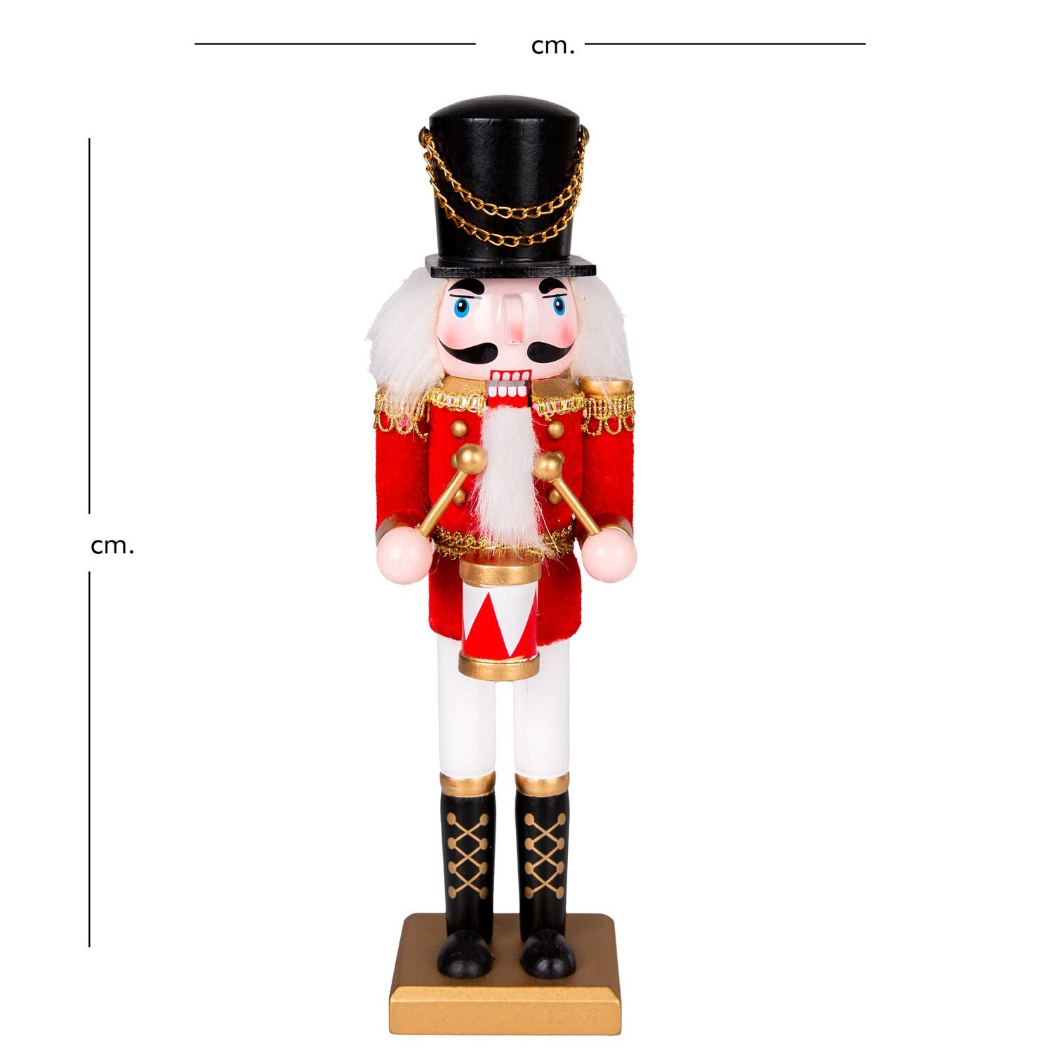 30 cm yüksekliğiyle Kırmızı Beyaz Fındıkkıran Süsü, hem dikkat çekici hem de çoğu dekorasyon stili ve mekanı için ideal bir boyuttadır. Kolayca konumlandırılabilir.