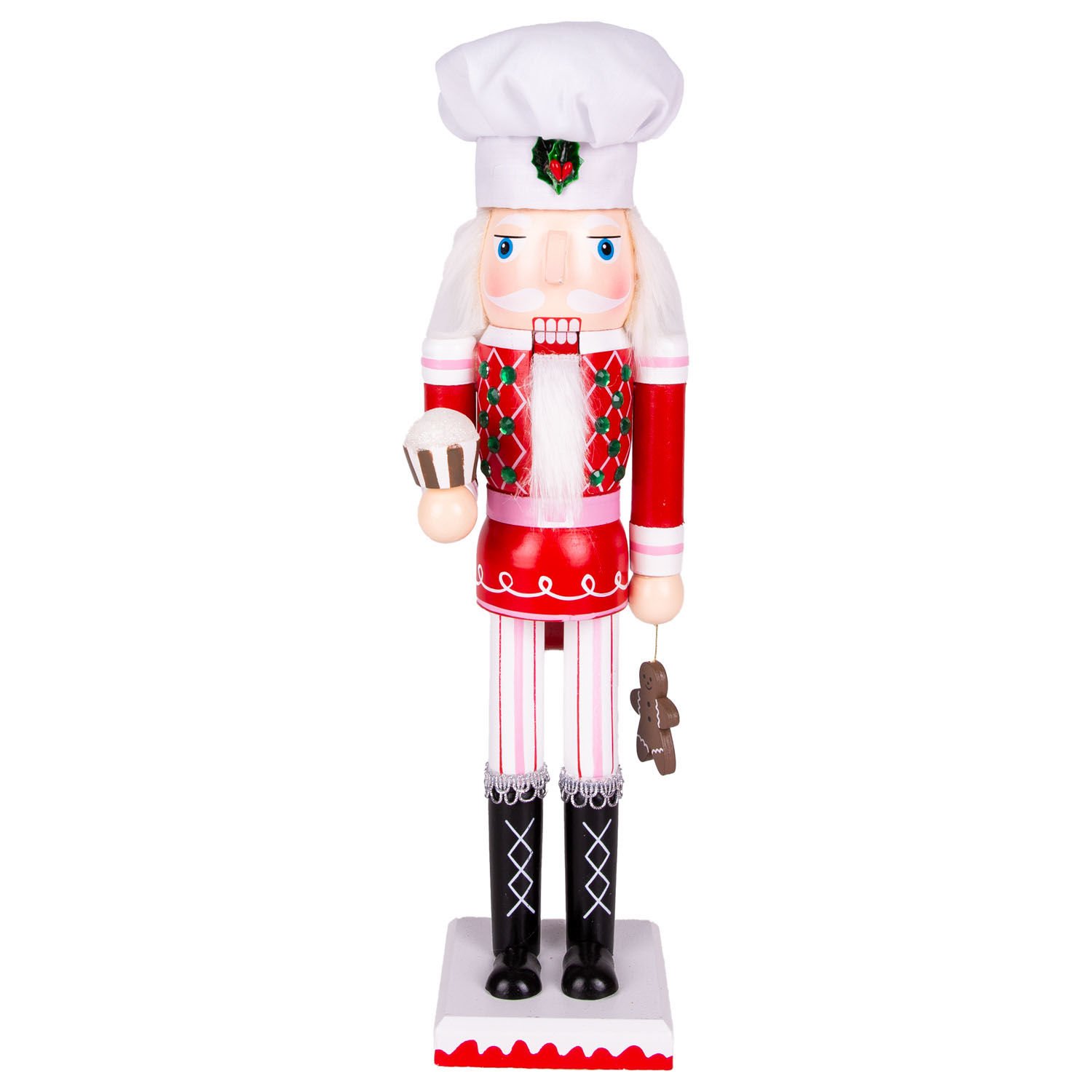 Yılbaşı Süsü, Kurşun Asker, Fındıkkıran, Aşçı, Yeşil Elmas Taşlı, Kırmızı-Beyaz - 37 cm
