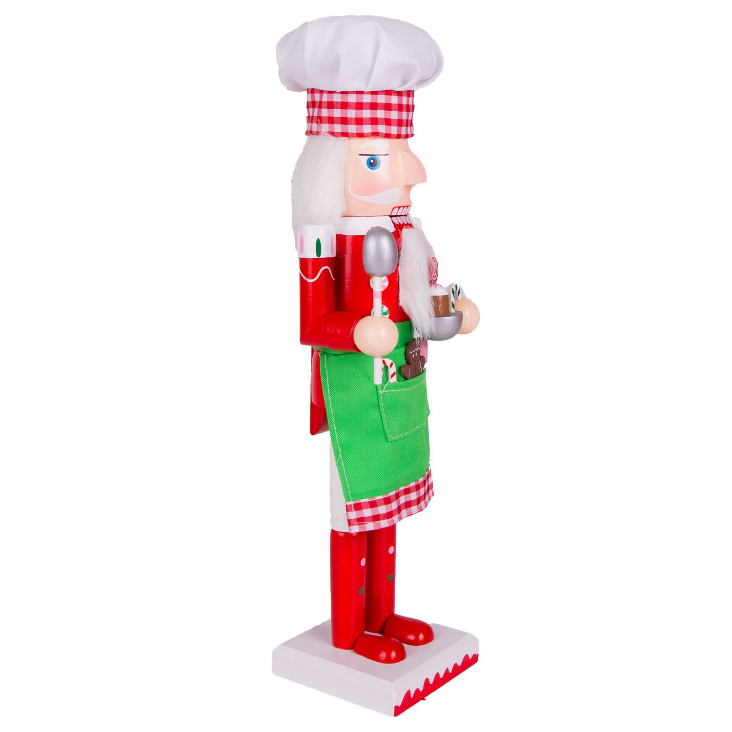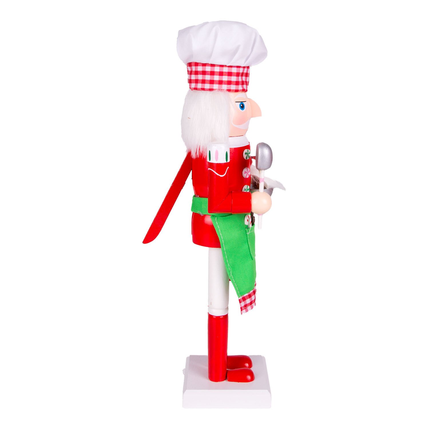 Yılbaşı Süsü, Kurşun Asker, Fındıkkıran, Aşçı, Yeşil Önlüklü, Kırmızı-Yeşil - 37 cm