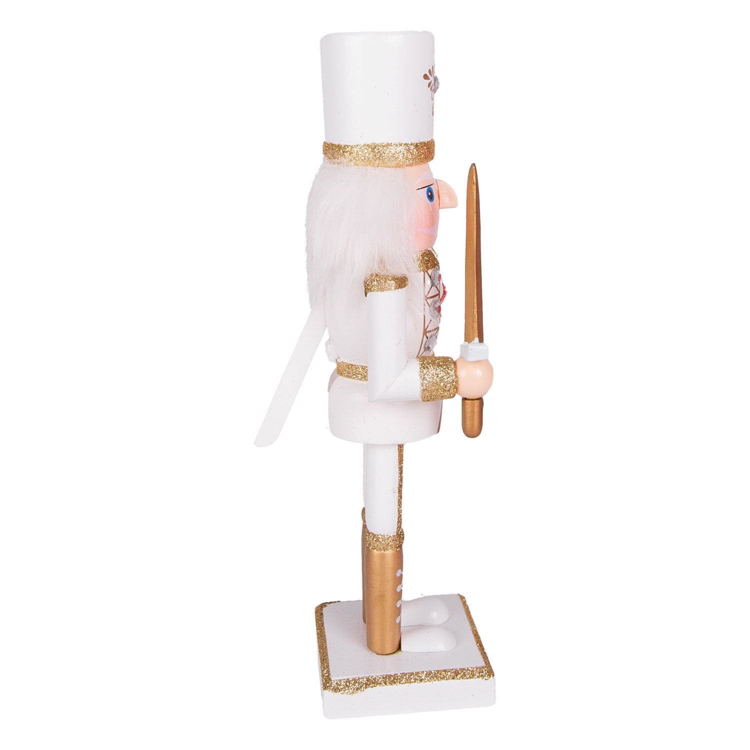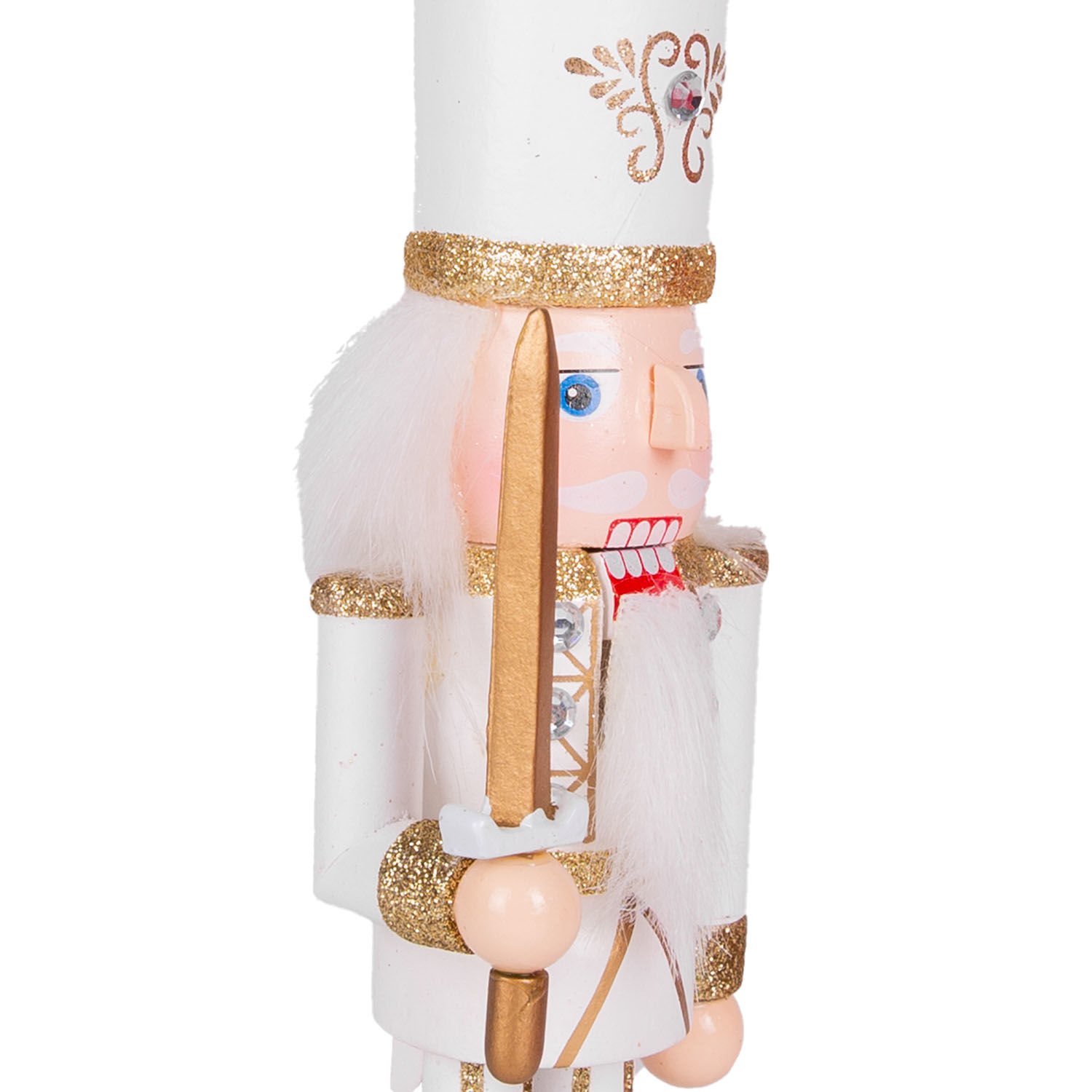 Yılbaşı Süsü, Kurşun Asker Fındıkkıran, Elmas Taş Detaylı, Kılıçlı, Simli, Gold-Beyaz - 25 cm