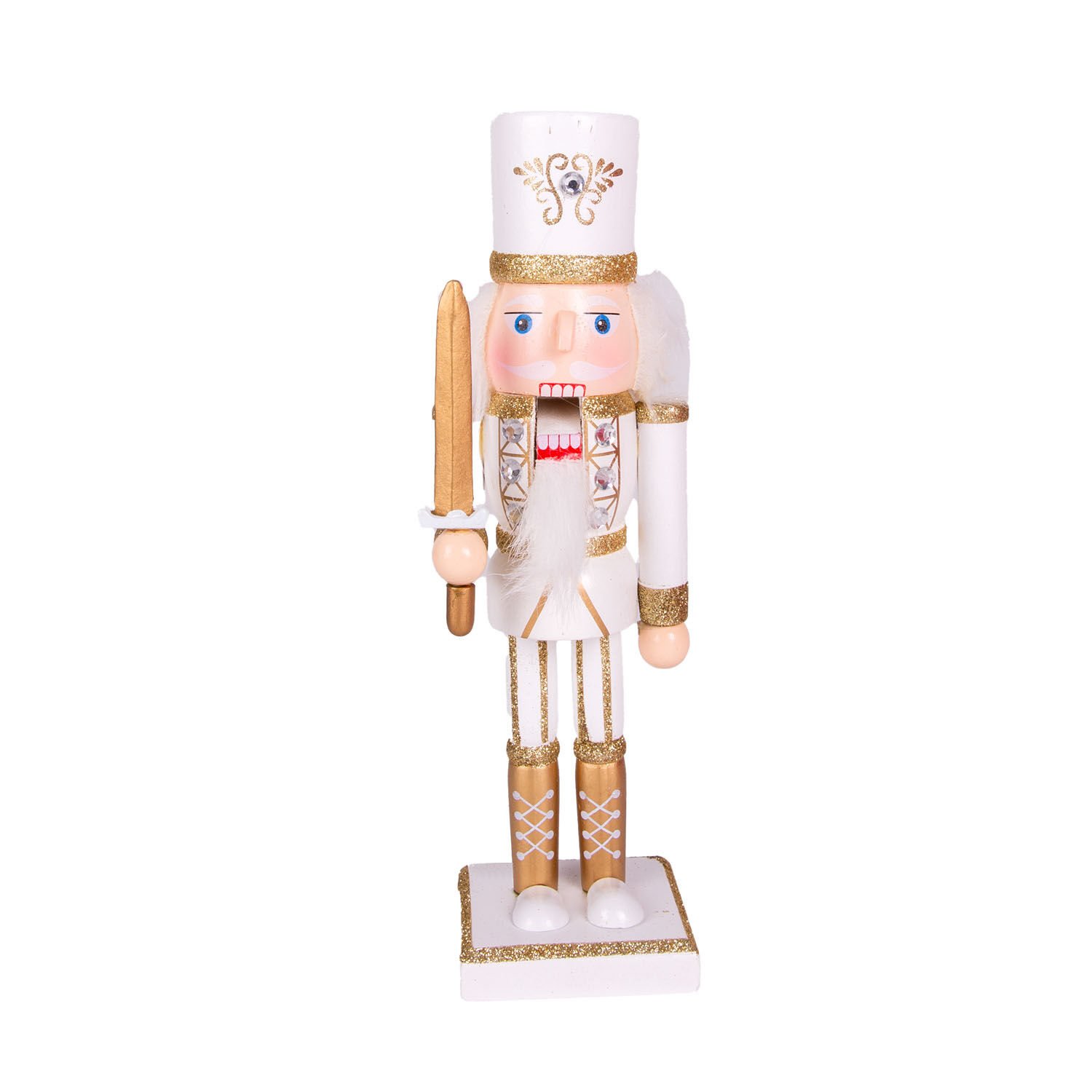 Yılbaşı Süsü Kurşun Asker Fındıkkıran Elmas Taş Detaylı Kılıçlı Simli Gold-Beyaz 25 Cm.
