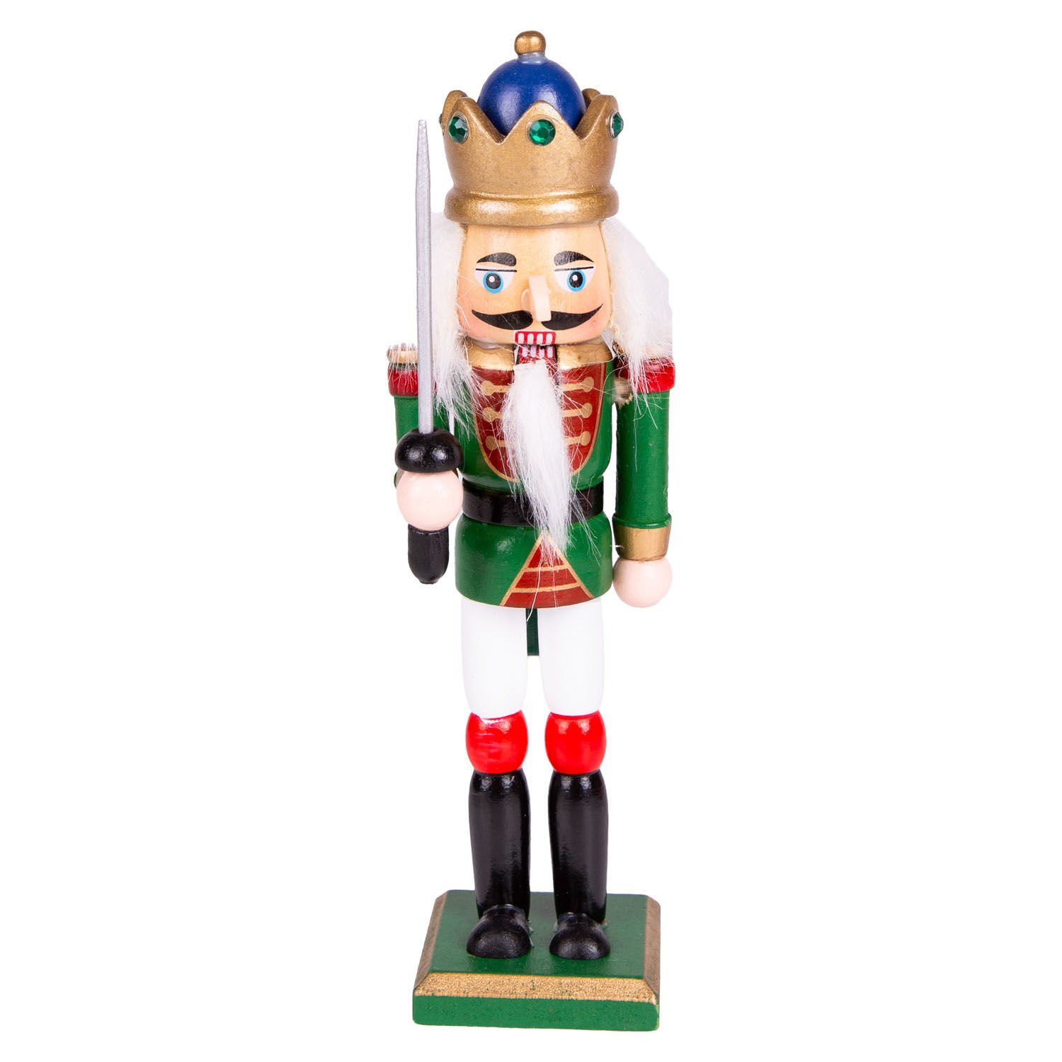 Yılbaşı Süsü, Kurşun Asker, Fındıkkıran, Gold Taçlı, Kılıçlı, Yeşil-Gold - 18 cm