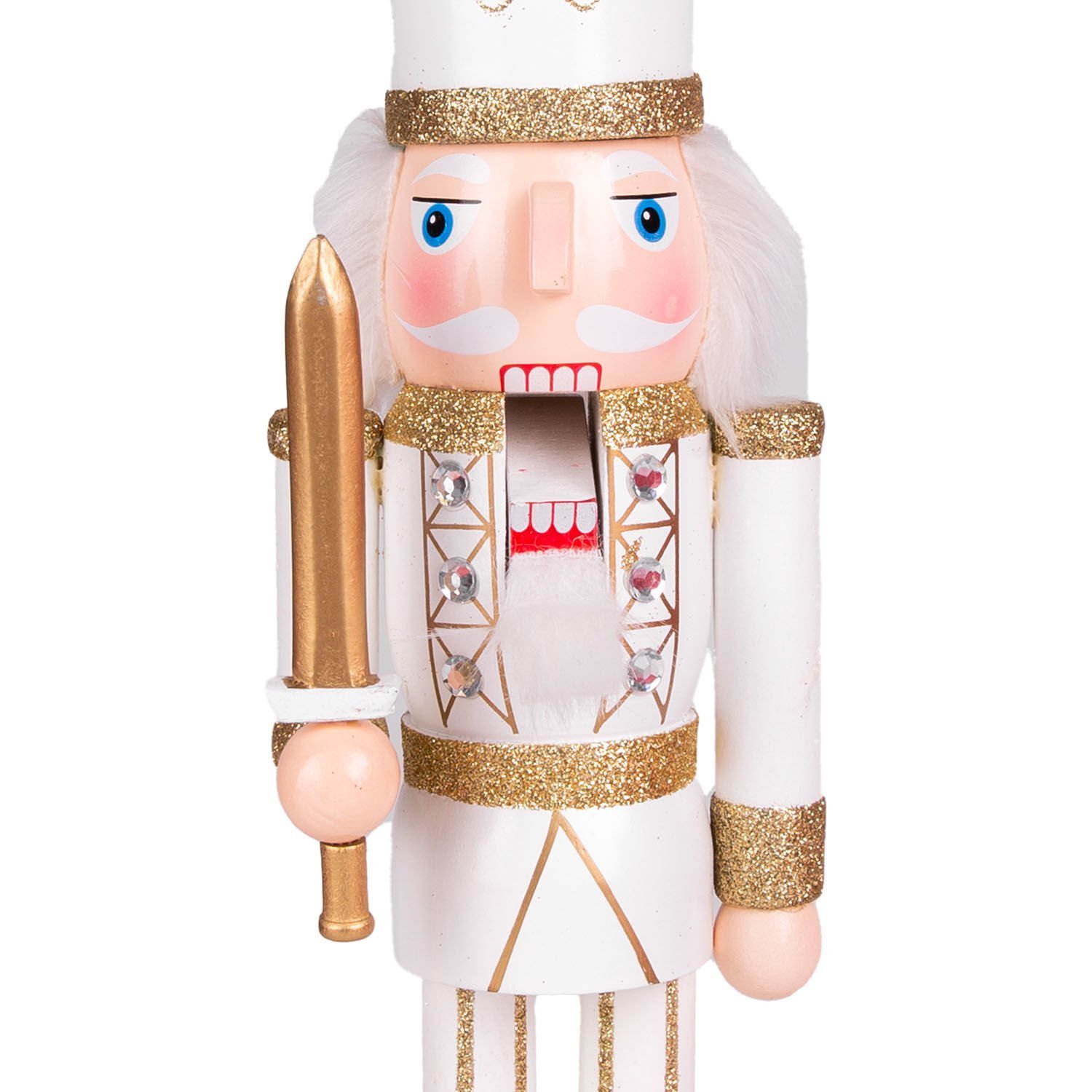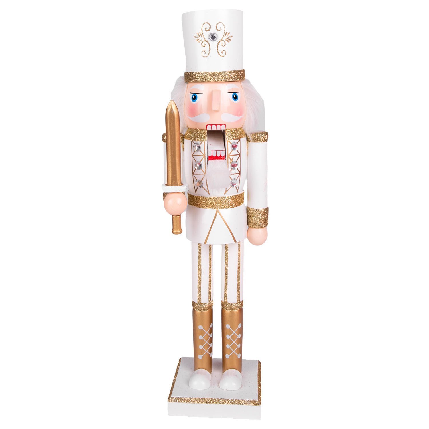 Yılbaşı Süsü, Kurşun Asker Fındıkkıran, Simli, Beyaz Şapkalı, Kılıçlı, Gold-Beyaz - 38 cm