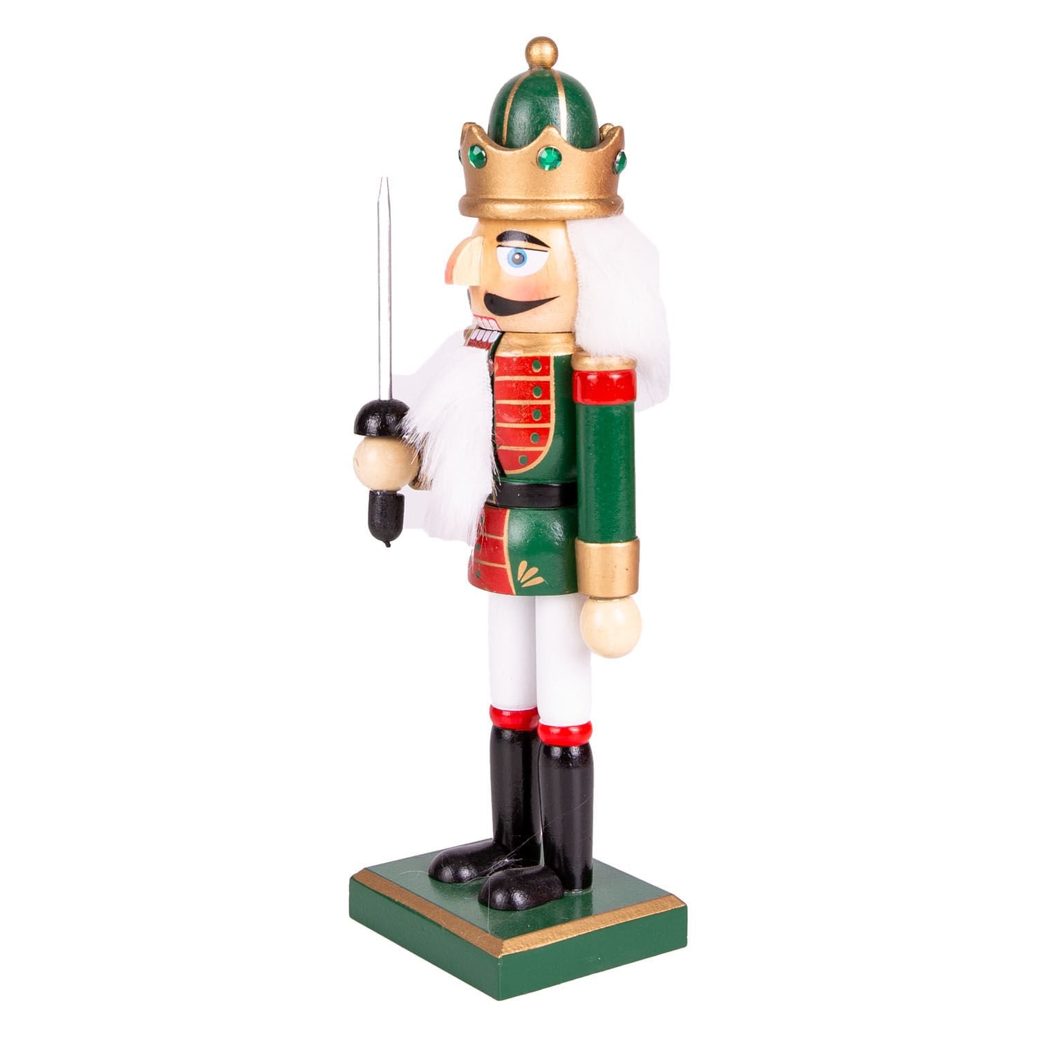 Yılbaşı Süsü, Kurşun Asker, Fındıkkıran, Taçlı, Kılıçlı, Yeşil-Beyaz - 25 cm