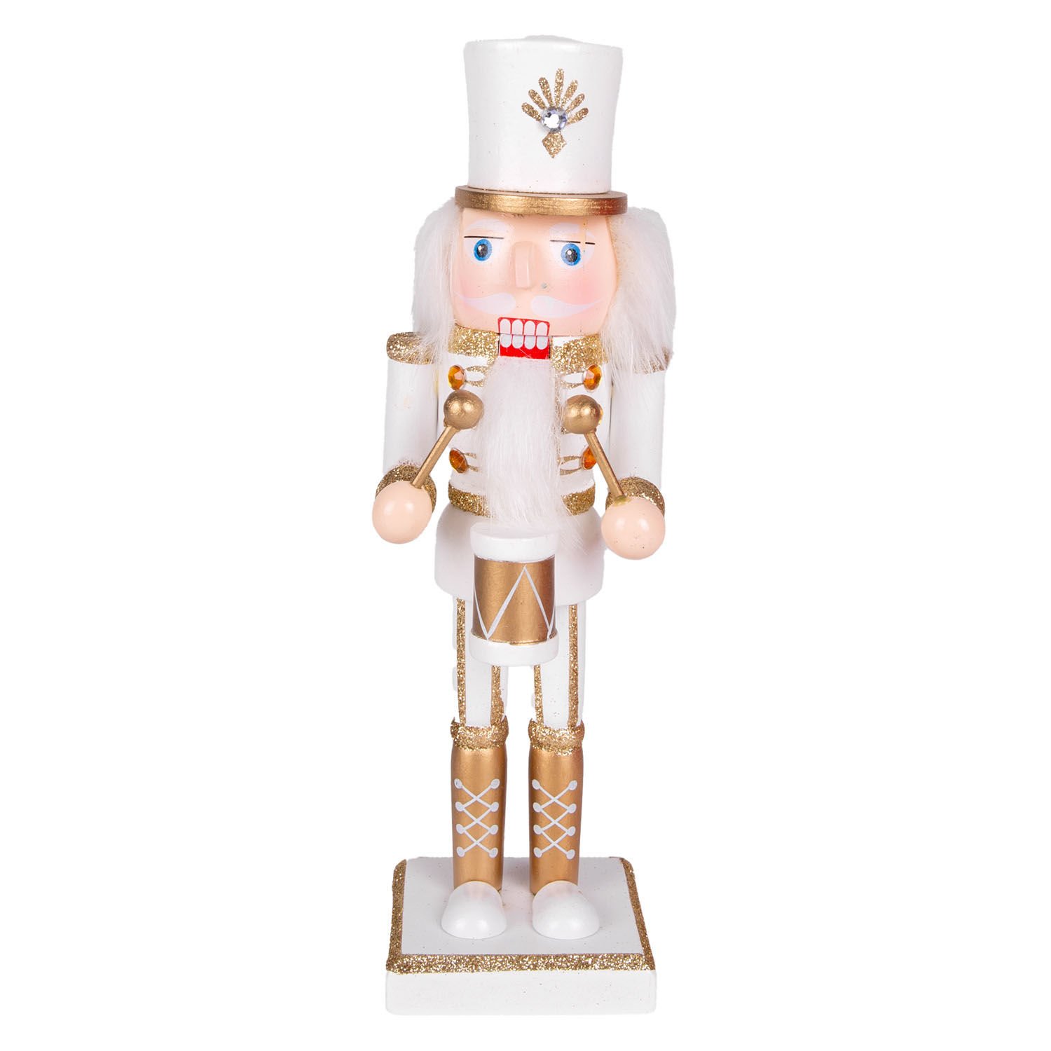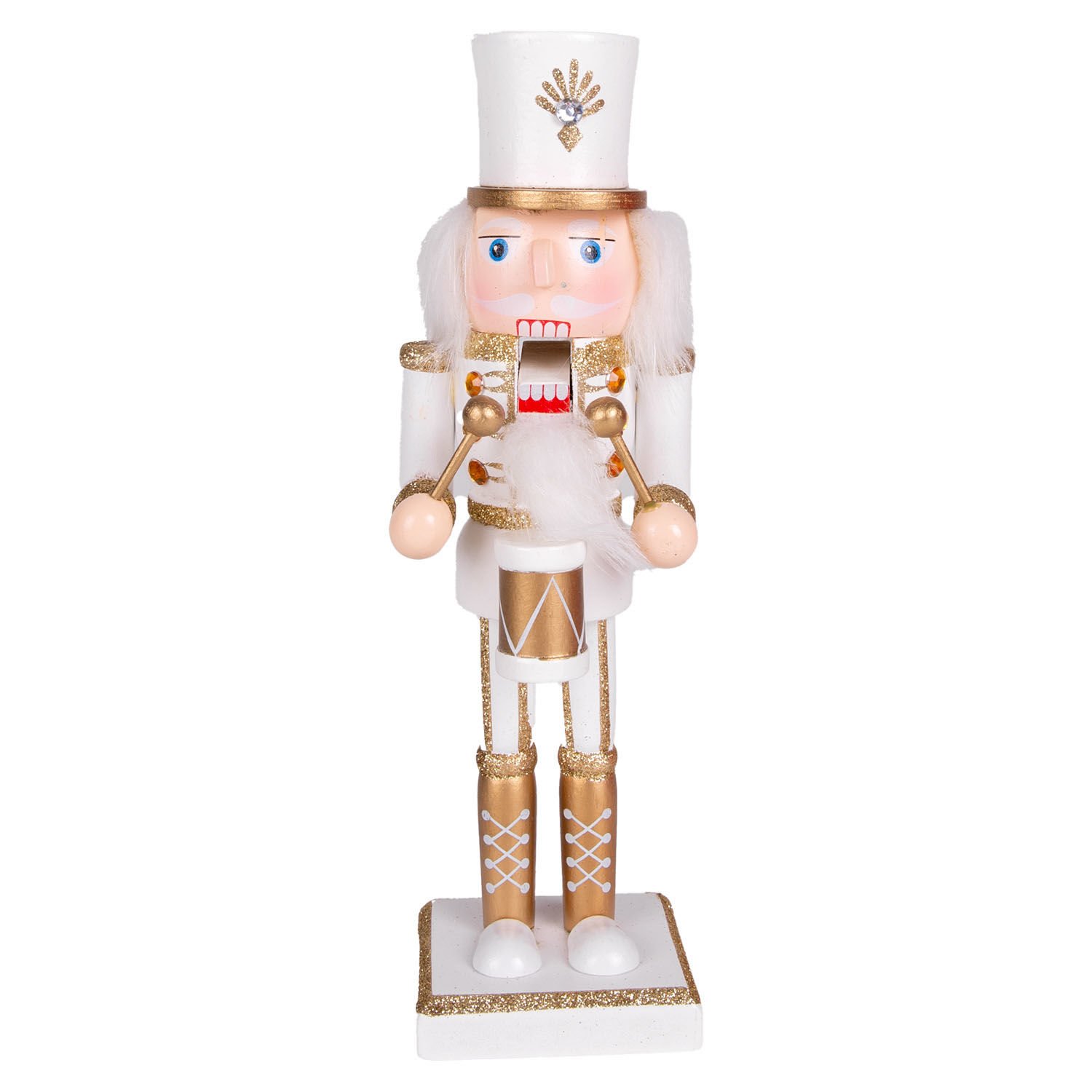 Yılbaşı Süsü, Kurşun Asker, Fındıkkıran, Trampetli, Gold-Beyaz - 25 cm