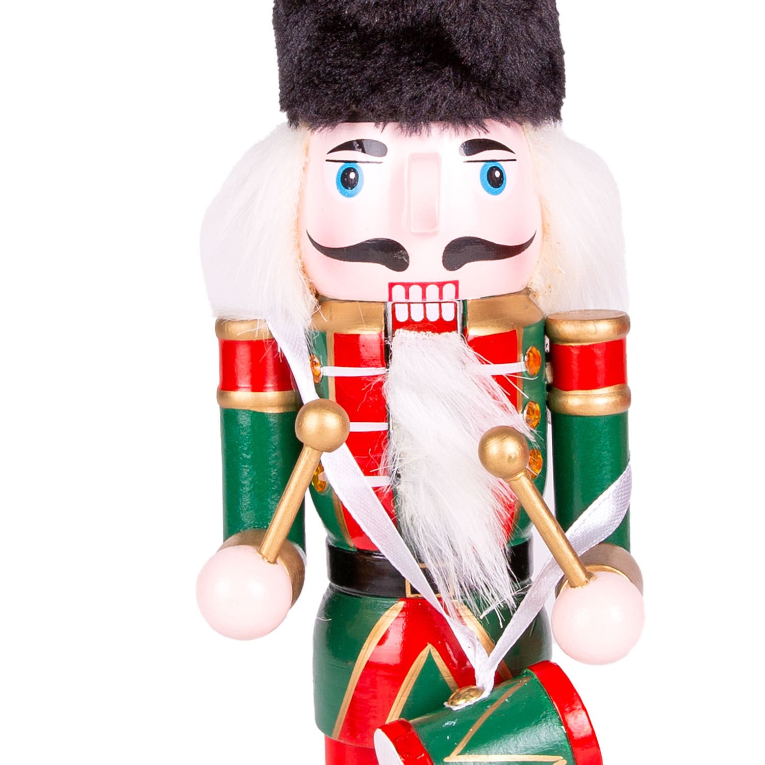 Yılbaşı Süsü Kurşun Asker Fındıkkıran Tüylü Şapkalı Trampetli Yeşil-Kırmızı 30 Cm.