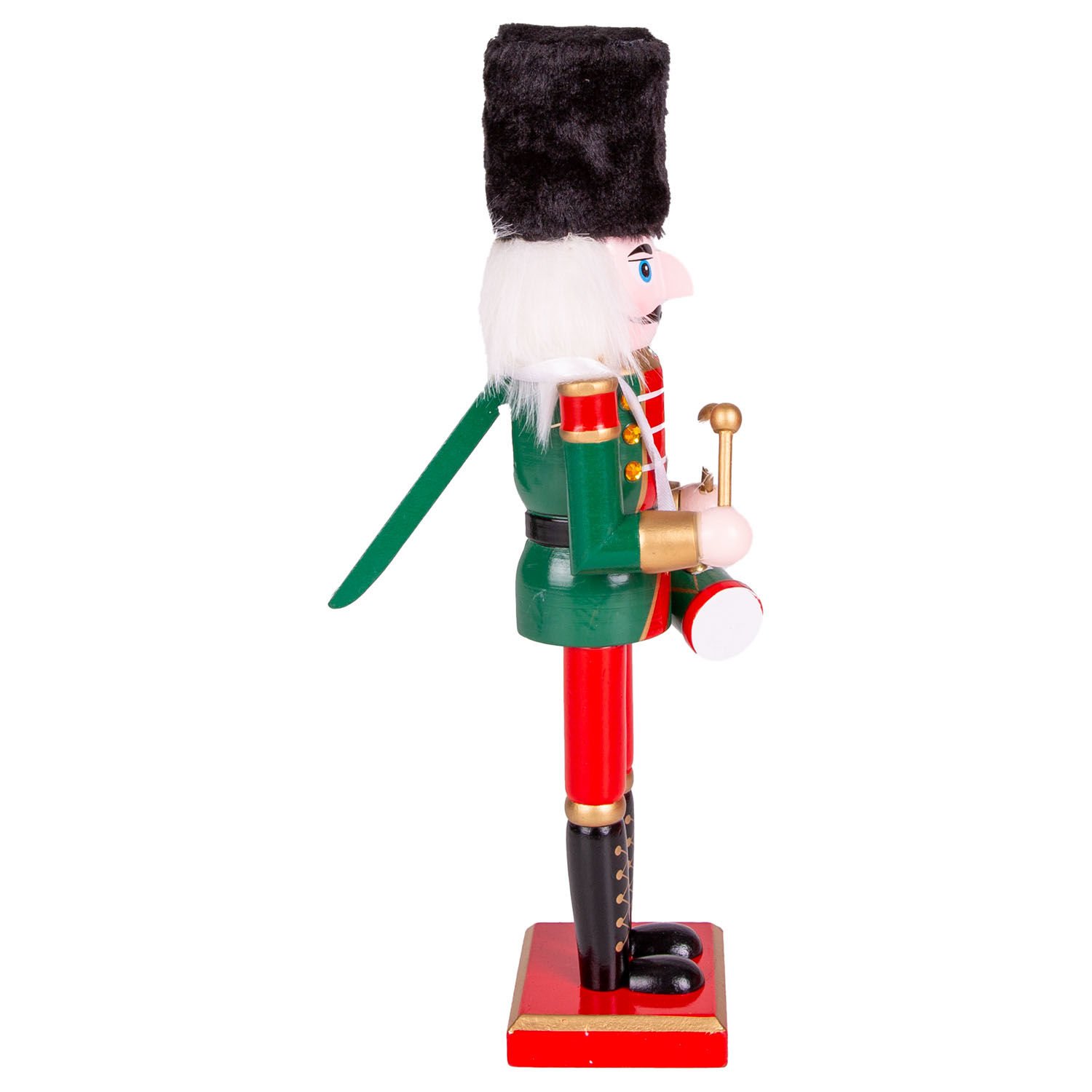 Yılbaşı Süsü, Kurşun Asker, Fındıkkıran, Tüylü Şapkalı, Trampetli, Yeşil-Kırmızı - 30 cm