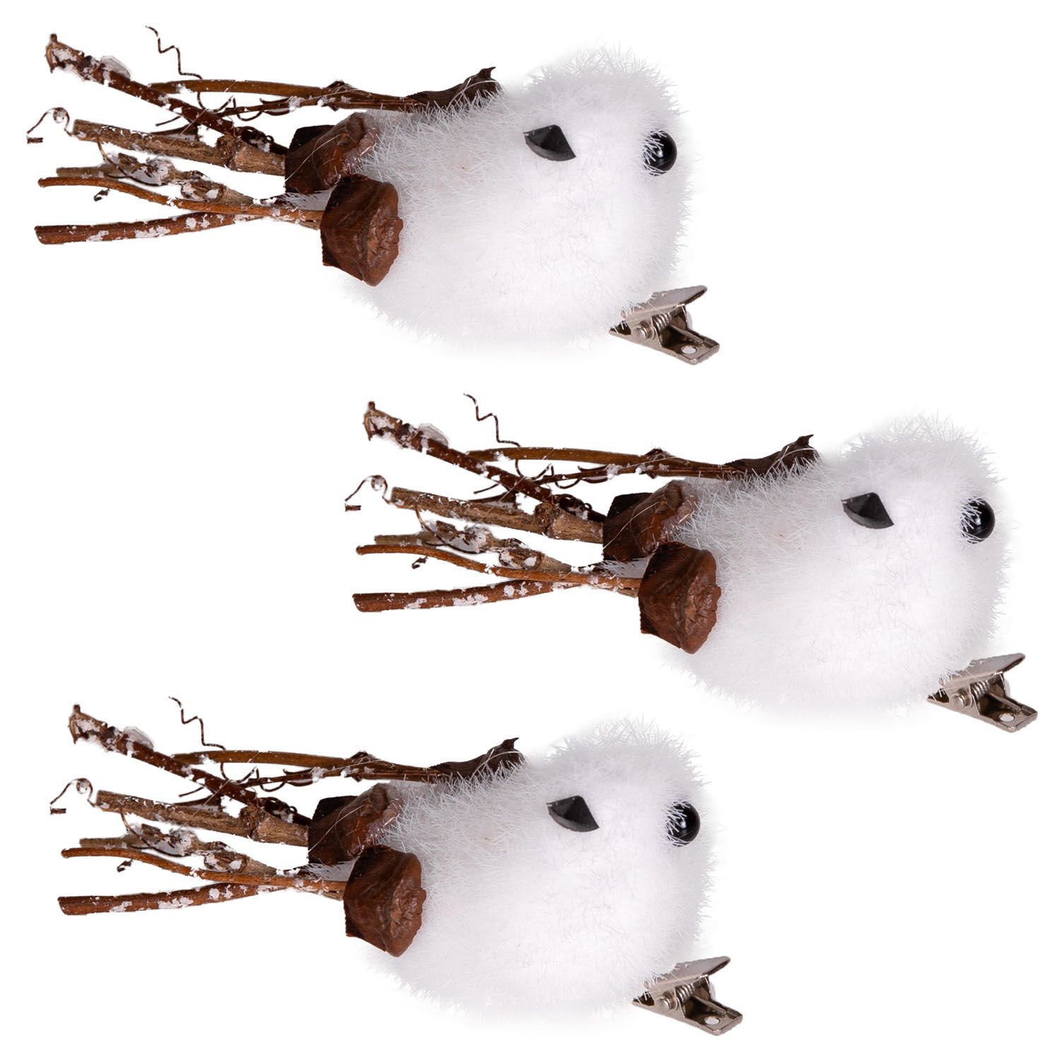 Yılbaşı Süsü, Kuş, Klipsli, Beyaz - 3'lü Paket, 7x3 cm