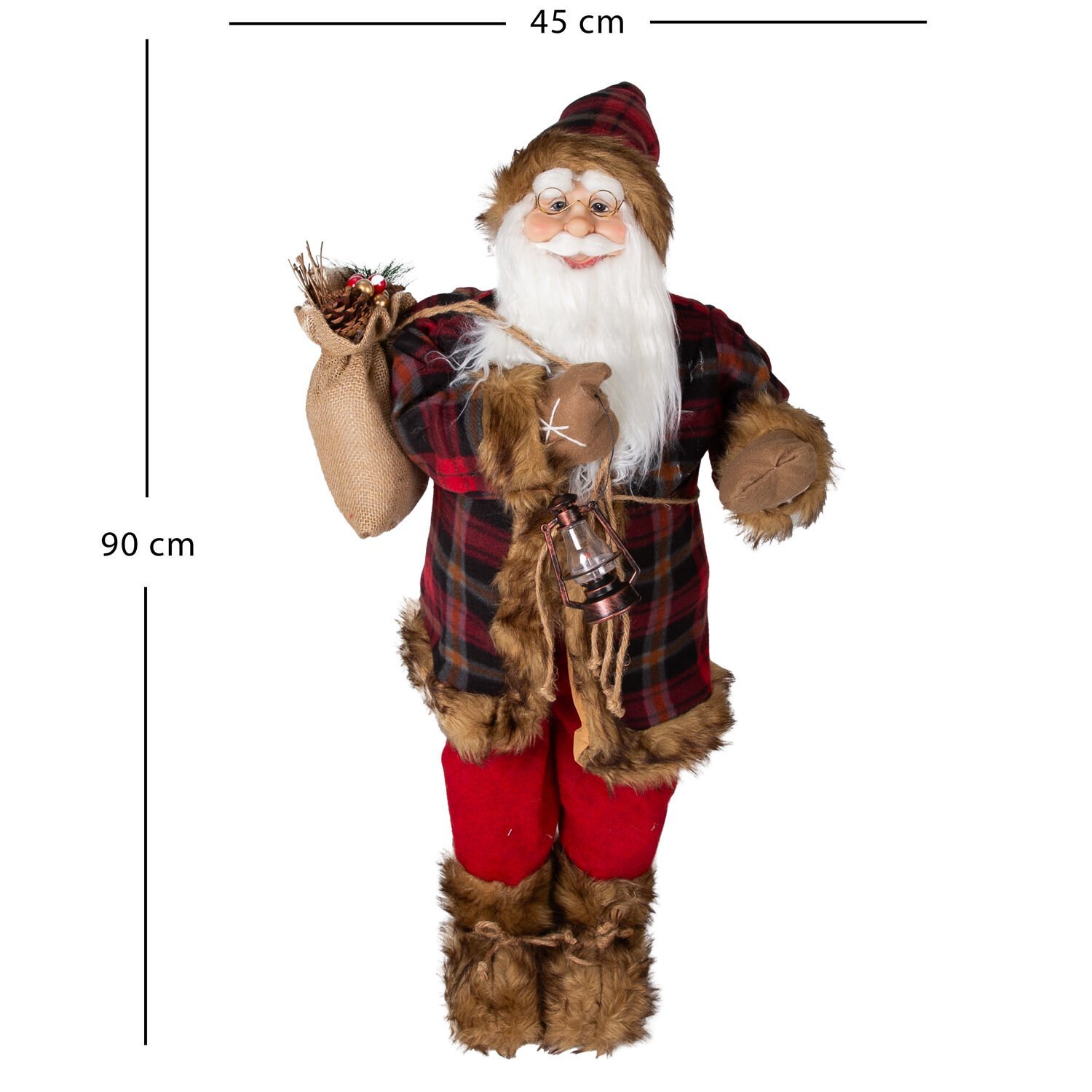 Yılbaşı Noel Baba Ekose Kumaşlı Figür (90 cm): Kırmızı-Siyah Ekoseyle Modern Yılbaşı Temalarına Göz Kamaştırıcı Uyum