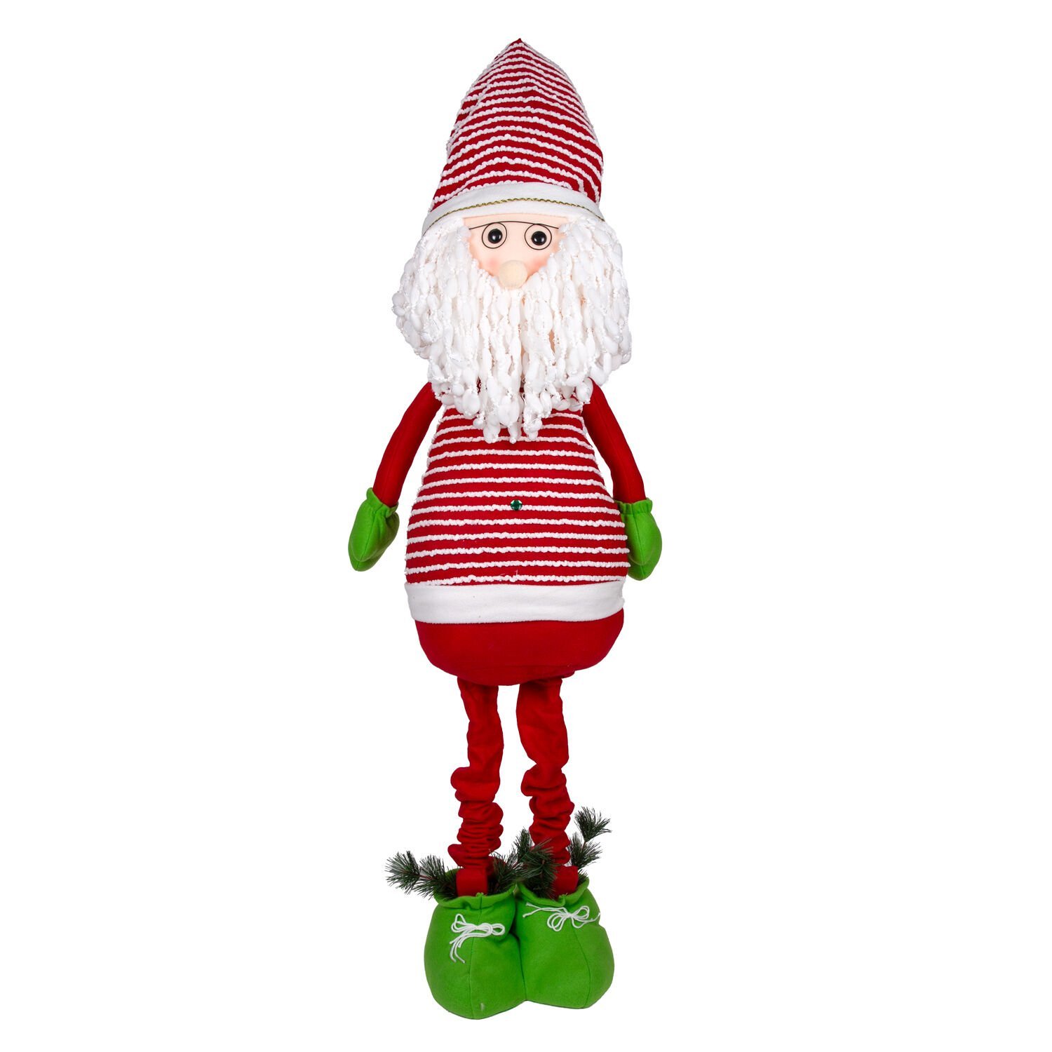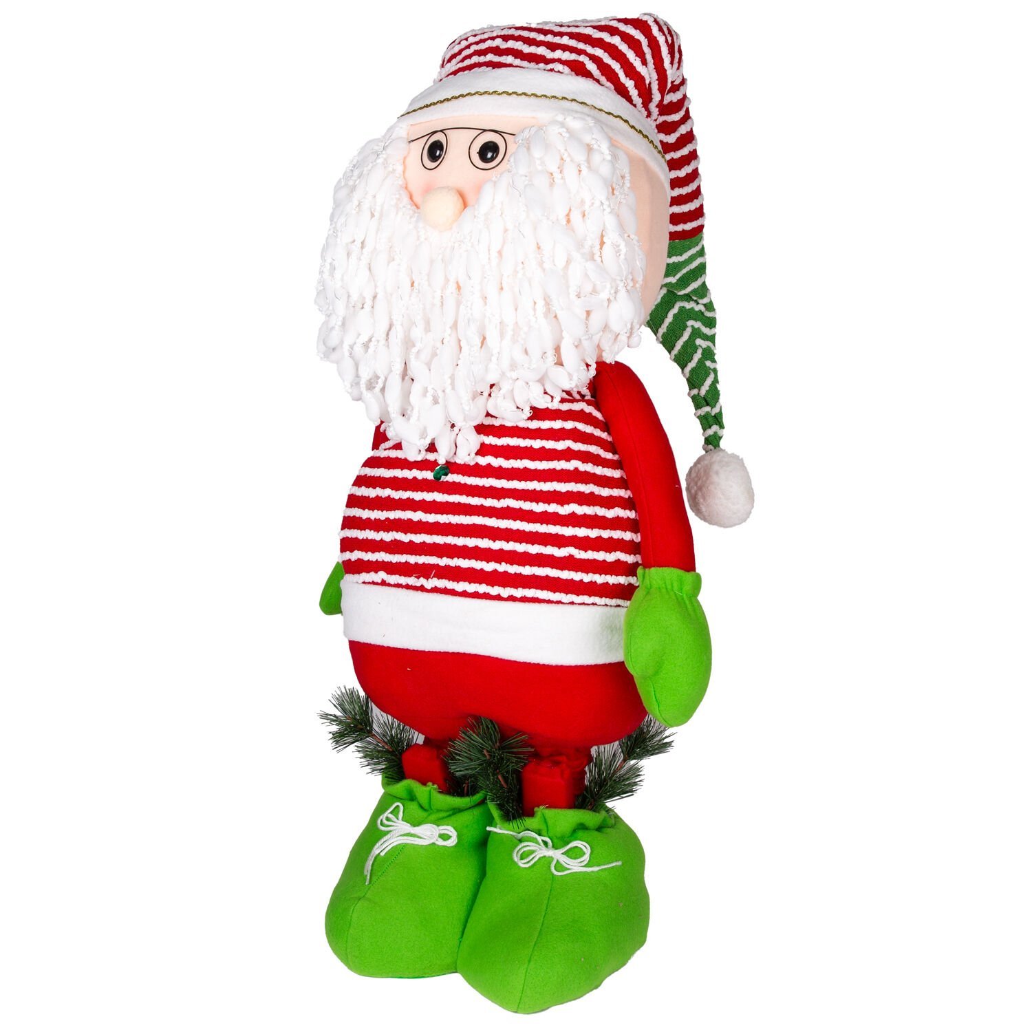 Yılbaşı Süsü, Noel Baba, Kırmızı-Yeşil - Uzayan Ayaklı, Çizgili, İp Sakallı, Çam Süsü Detaylı, 180 cm