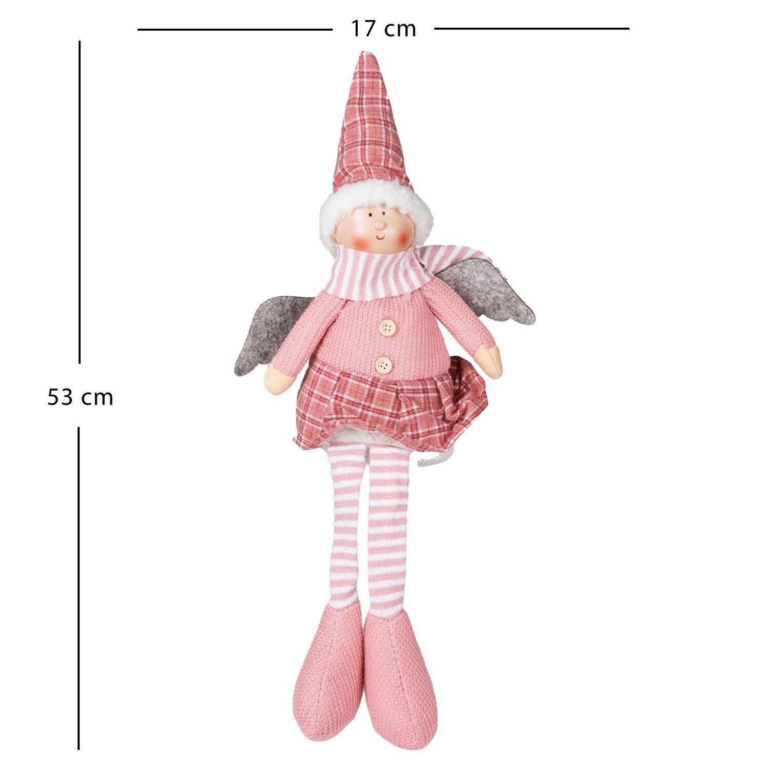 Bu ideal boyutlu figür, özellikle şömine şöminesinin kenarında, kitaplık veya raf kenarında bacakları aşağı sarkacak şekilde veya geniş bir konsolun üstünde asil bir vurgu olarak kullanılmalıdır. Yanına gümüş, beyaz veya açık gri tonlarında toplar ekleyerek modern-romantik bir yılbaşı köşesi oluşturabilirsiniz. Figürün duruşu, fotoğraflarınız için harika bir fon oluşturur. Pembe tonları, huzurlu ve çağdaş bir kış atmosferi yaratır. Sizin için tasarlanan detayları şimdi deneyimleyin.