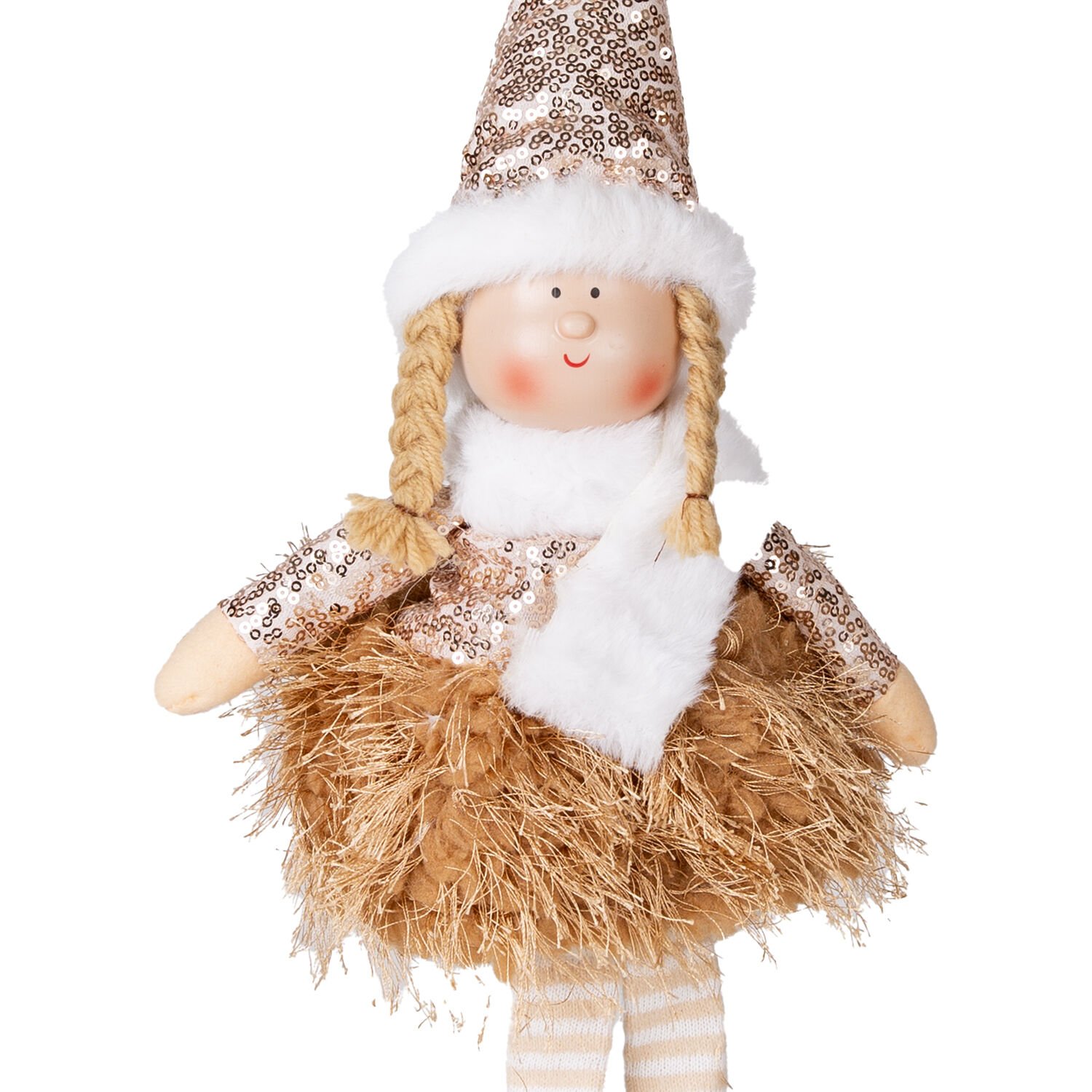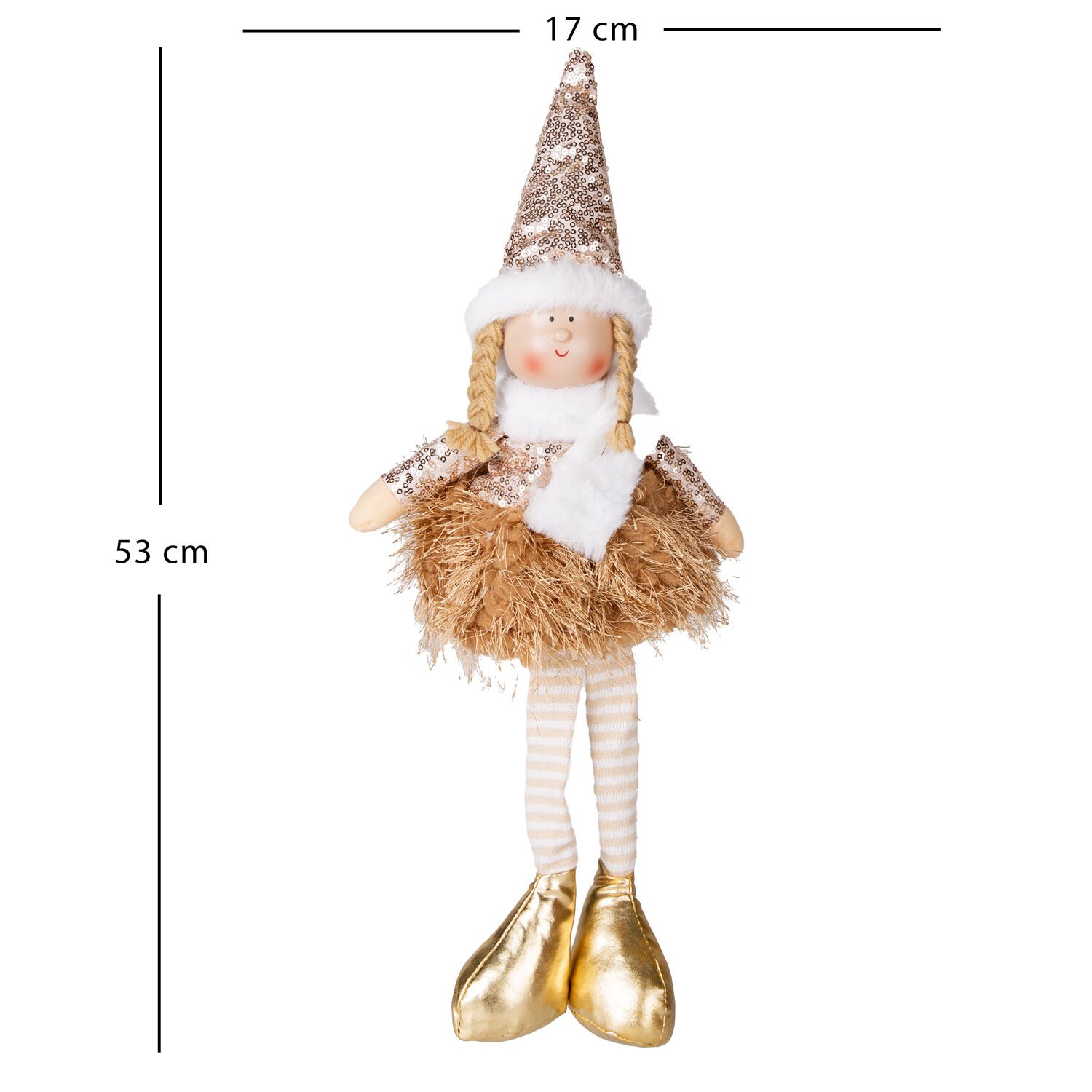 Yılbaşı Oturan Peri Figürü (53 cm, Gold): Altın Renginin Zenginliğiyle Parlayan Lüks ve Göz Alıcı Dekorasyon