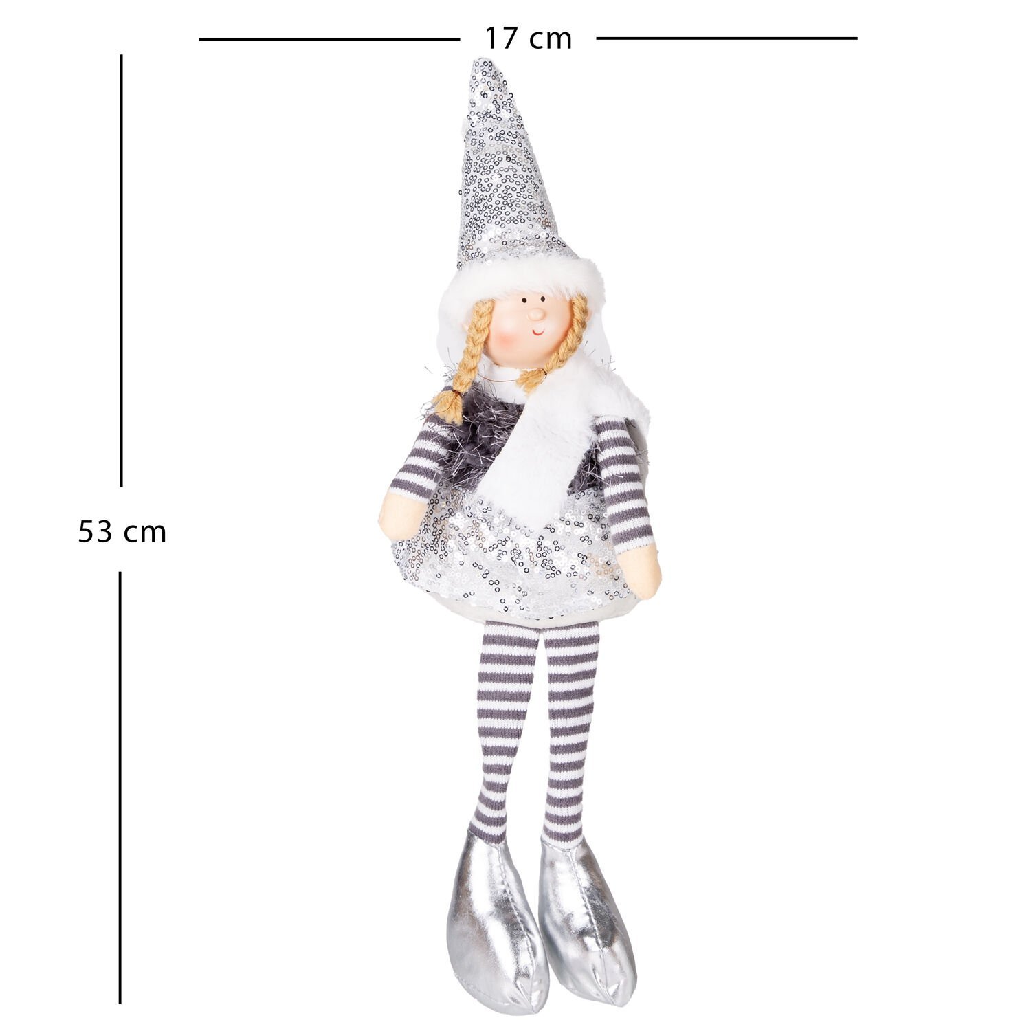 Bu ideal boyutlu figür, özellikle şömine şöminesinin kenarında, kitaplık veya raf kenarında bacakları aşağı sarkacak şekilde veya geniş bir konsolun üstünde asil bir vurgu olarak kullanılmalıdır. Yanına gümüş, beyaz veya açık mavi tonlarında toplar ekleyerek minimalist-romantik bir yılbaşı köşesi oluşturabilirsiniz. Figürün duruşu, fotoğraflarınız için harika bir fon oluşturur. Gri tonları, huzurlu ve çağdaş bir kış atmosferi yaratır. Sizin için tasarlanan detayları şimdi deneyimleyin.
