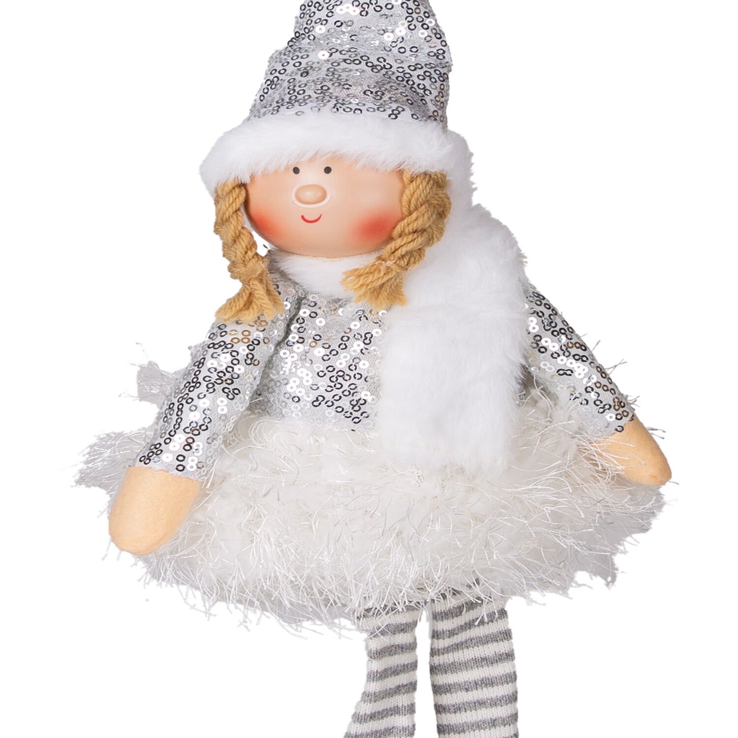 Yılbaşı Süsü, Oturan Peri Figürü, Gümüş - 17x53 cm