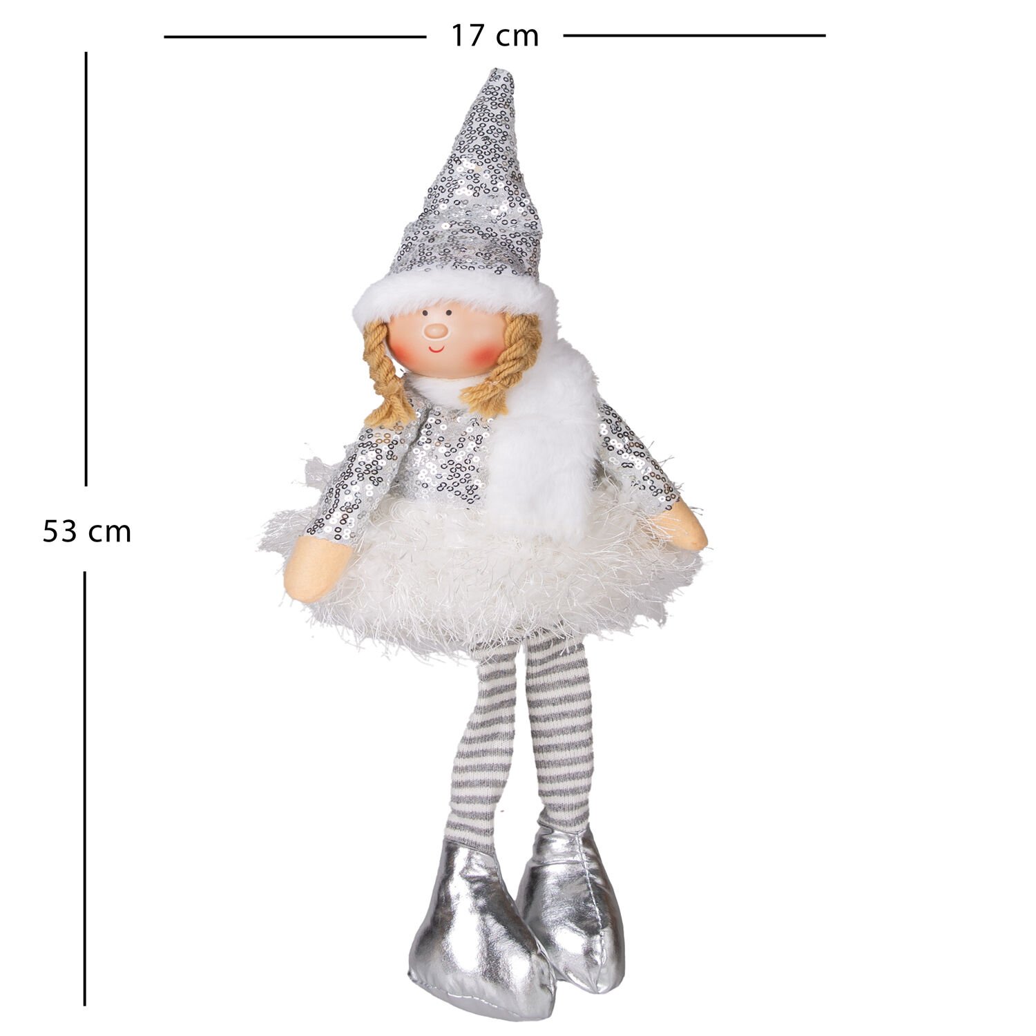 Yılbaşı Oturan Peri Figürü (53 cm, Gümüş): Baştan Ayağa Gümüş Işıltısıyla Modern ve Cool Bir Yılbaşı Teması