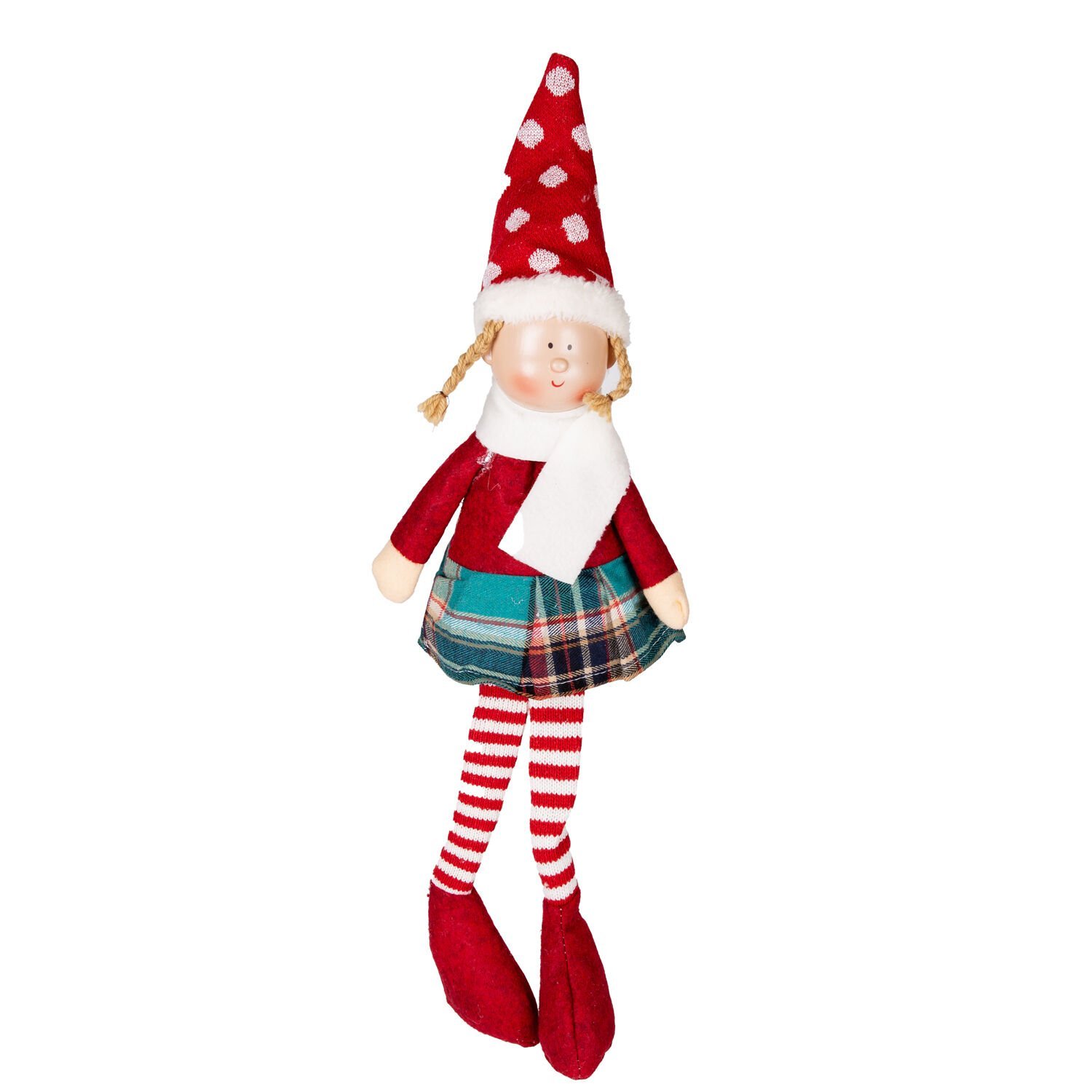 Yılbaşı Oturan Peri Figürü (53 cm, Kırmızı-Beyaz): Klasik Kırmızı-Beyaz Kıyafetiyle Yılbaşı Neşesini Evinize Getiren Tatlı Dekor