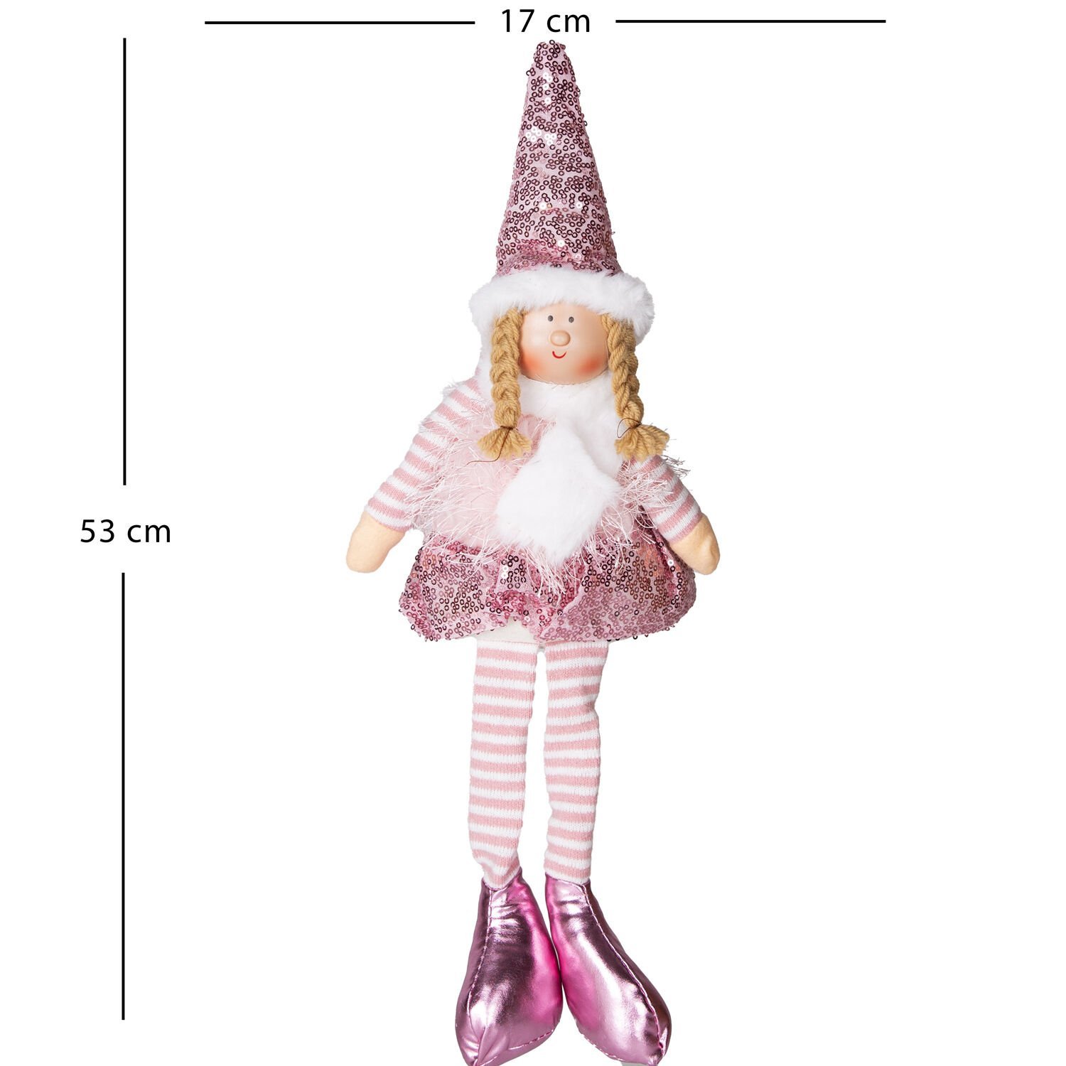 Yılbaşı Oturan Peri Figürü (53 cm, Pembe): Tamamen Pembe Giysileriyle Tatlı ve Romantik Bir Yılbaşı Dekorasyonu