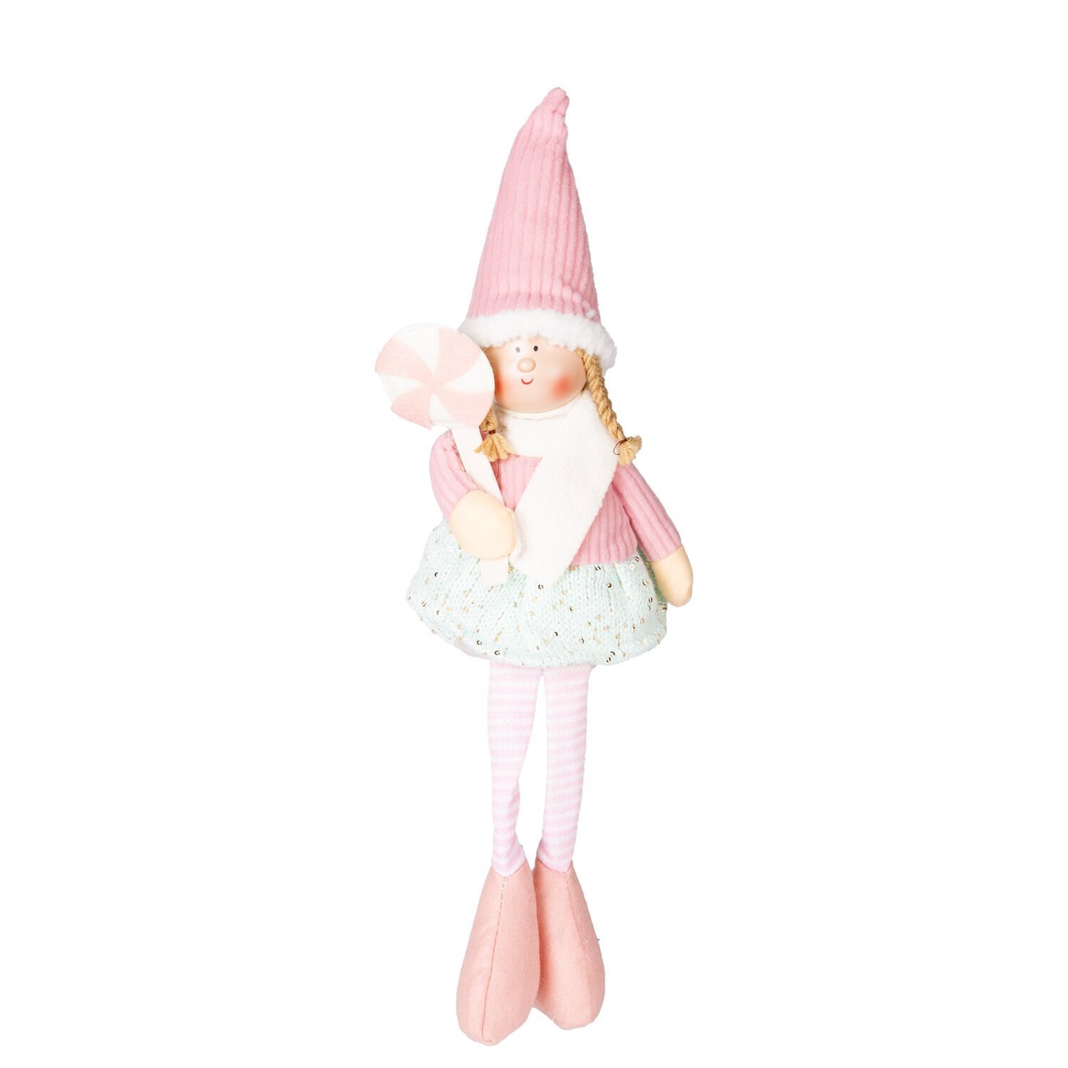 Yılbaşı Oturan Peri Figürü (53 cm, Pembe-Beyaz/Şeker Tutan): Tatlılığıyla İç Isıtan ve Neşe Saçan Sevimli Dekor