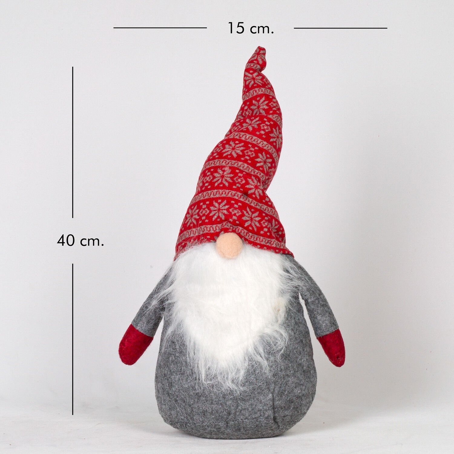 Yılbaşı Süsü, Pelüş Cüce, Kırmızı-Gri - 40 cm