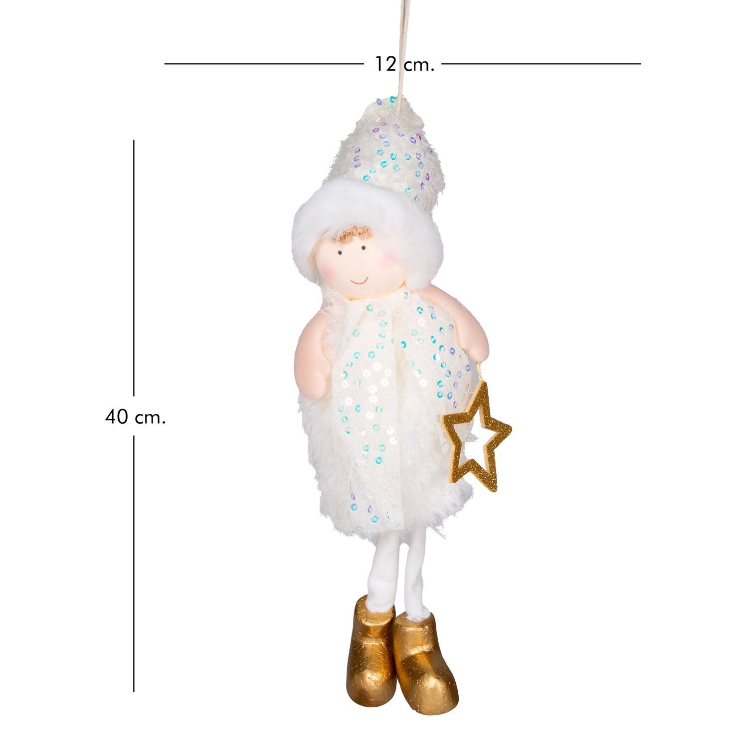 Yılbaşı Süsü, Peri Figürlü, Gold-Beyaz - 12x40 cm