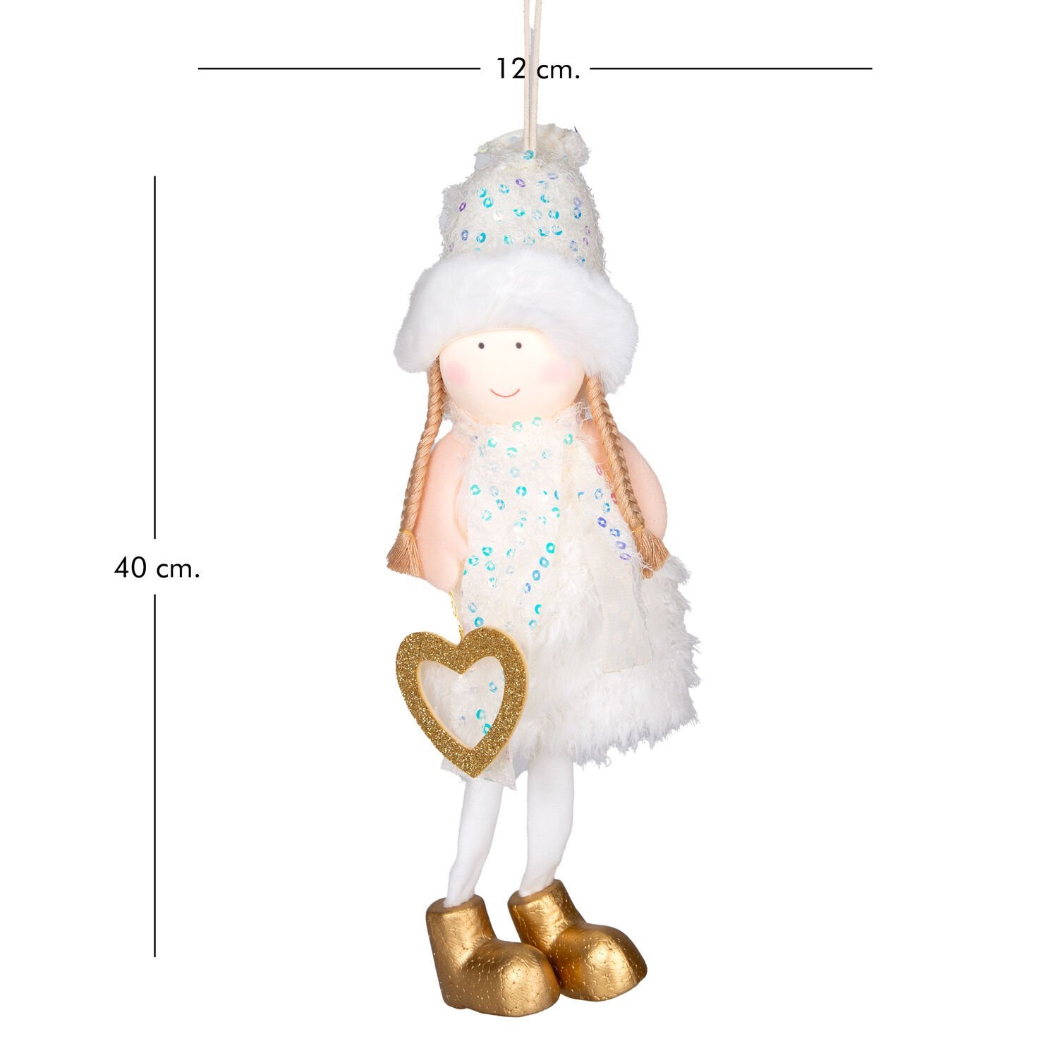 Yılbaşı Süsü, Peri Figürlü, Gold-Beyaz - 12x40 cm