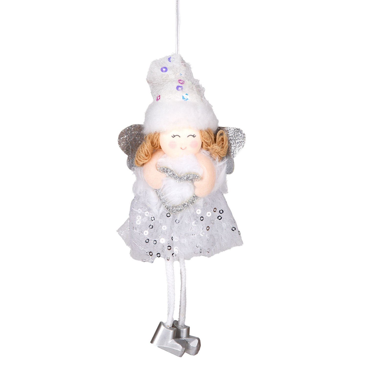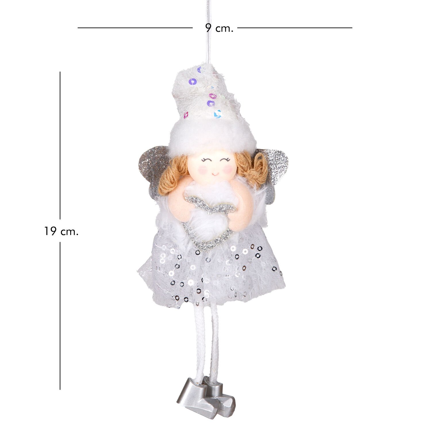 Yılbaşı Süsü, Peri Figürlü, Lame-Beyaz - 9x19 cm
