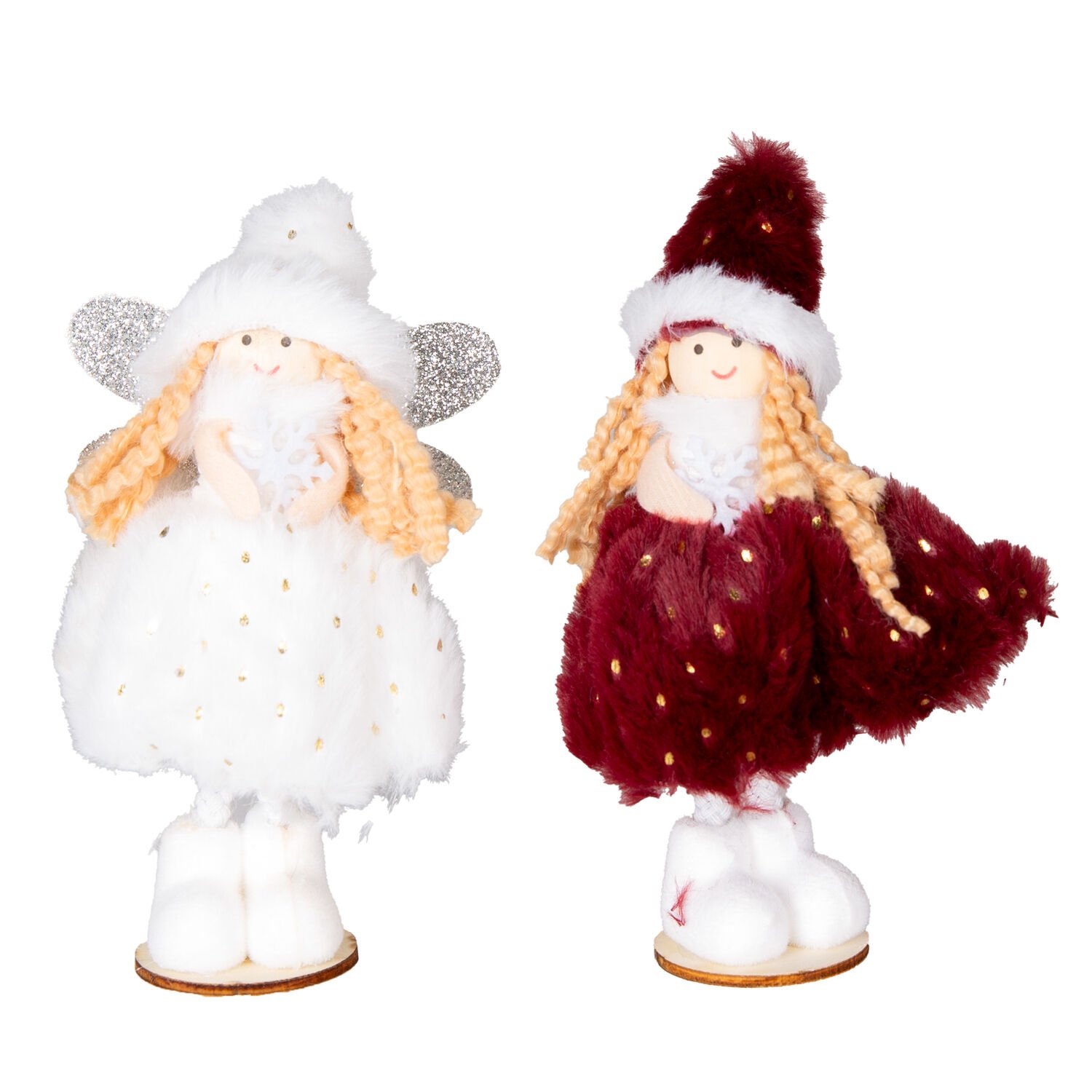 Yılbaşı Dekorasyonunuza Büyü Katın: Herdekora Ahşap Tabanlı 2'li Peri Figürü Seti (16 cm)
