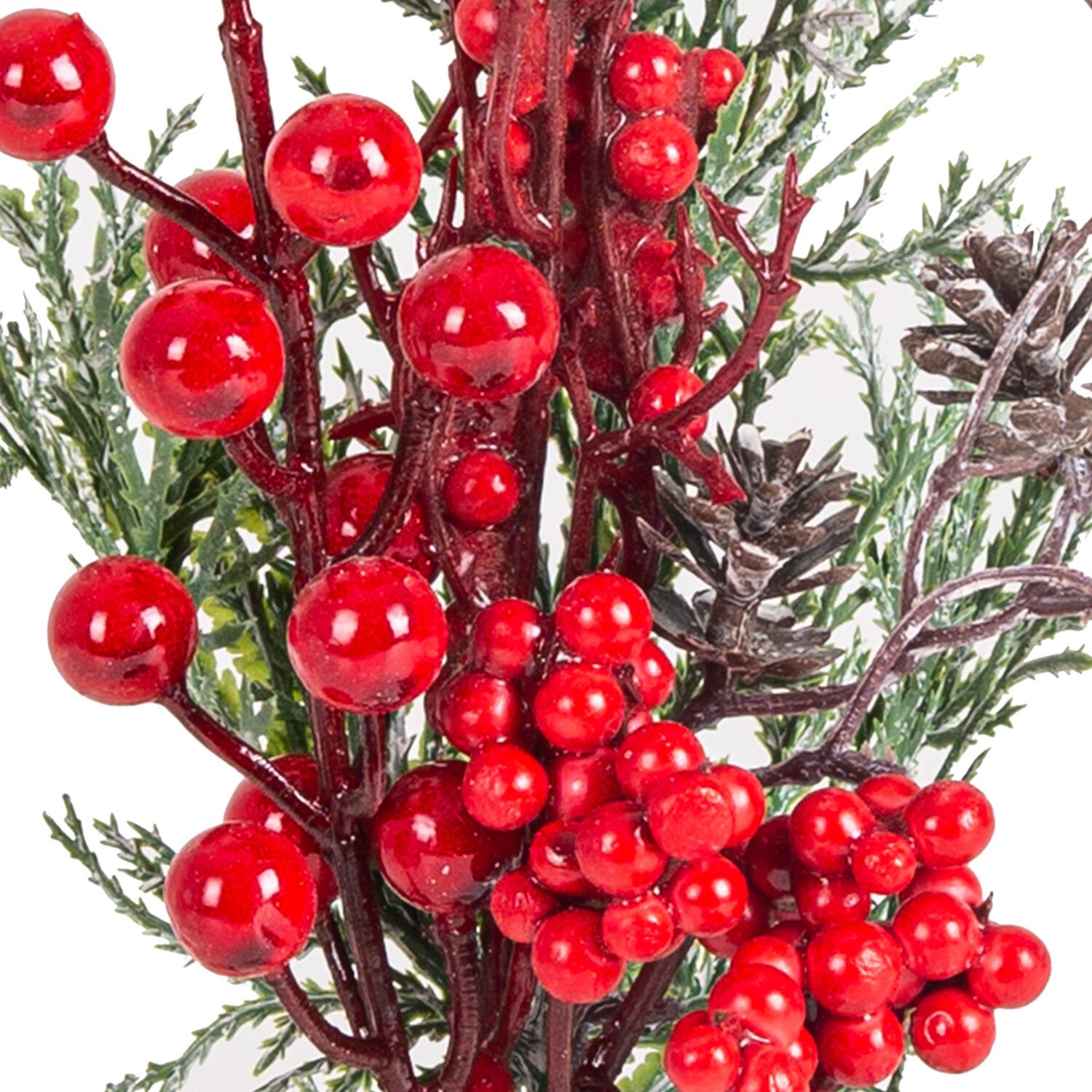 Yılbaşı Süsü Pike Aranjman Çam Kozalağı Berry Karlı Dal Kırmızı-Yeşil 10 x 30 Cm.
