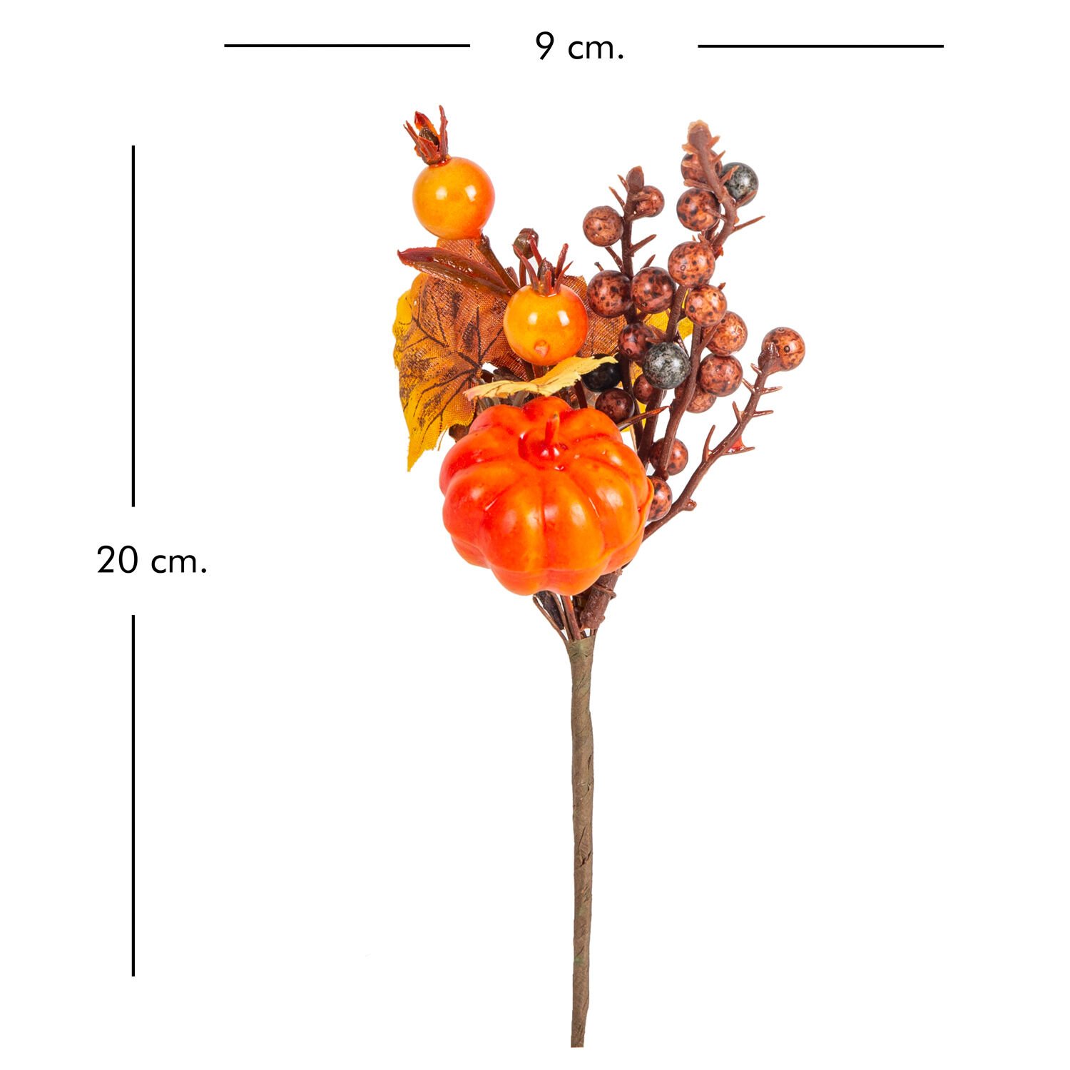 Yılbaşı Süsü, Pike Aranjman, Turuncu-Kahverengi - Sonbahar, Balkabağı Nar Berry Figürlü, 9 x 20 cm