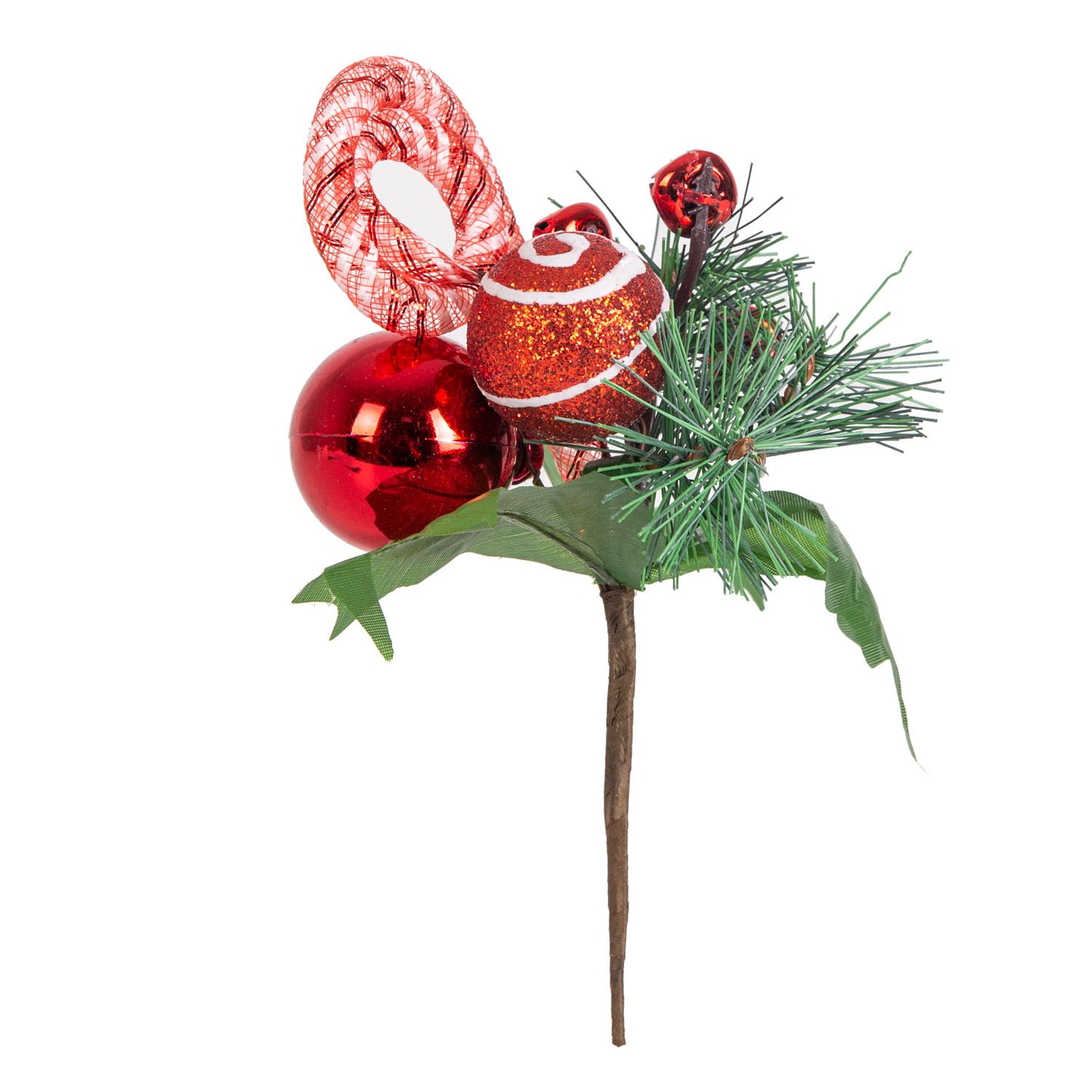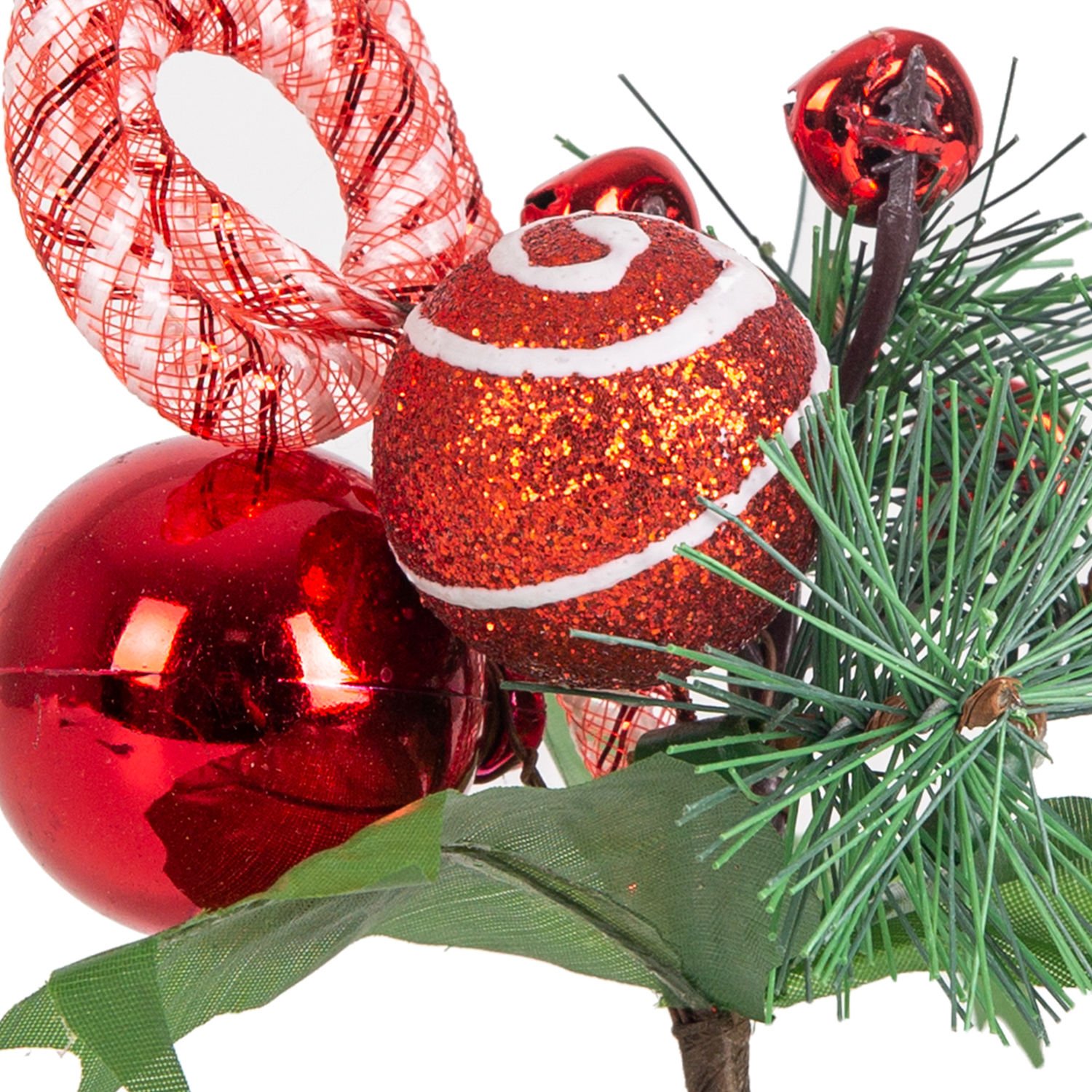 Yılbaşı Süsü, Pike Berry Aranjman, Kırmızı Yeşil - Çan Sesli, Yılbaşı Topu Figürlü, 13 x 20 cm