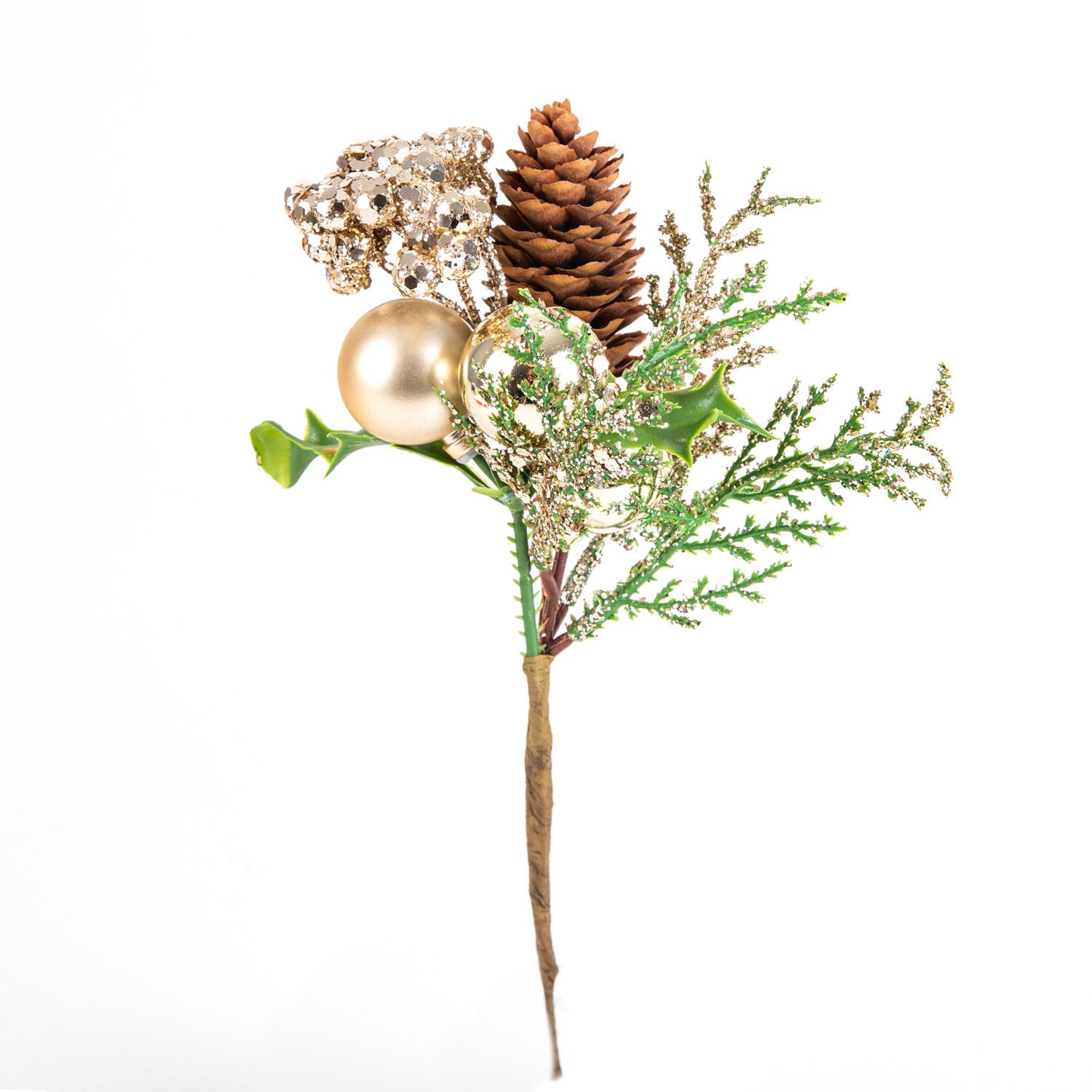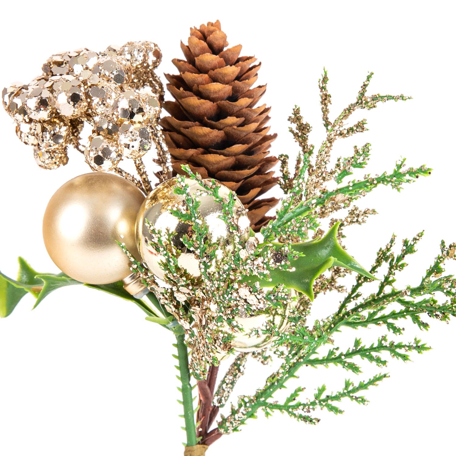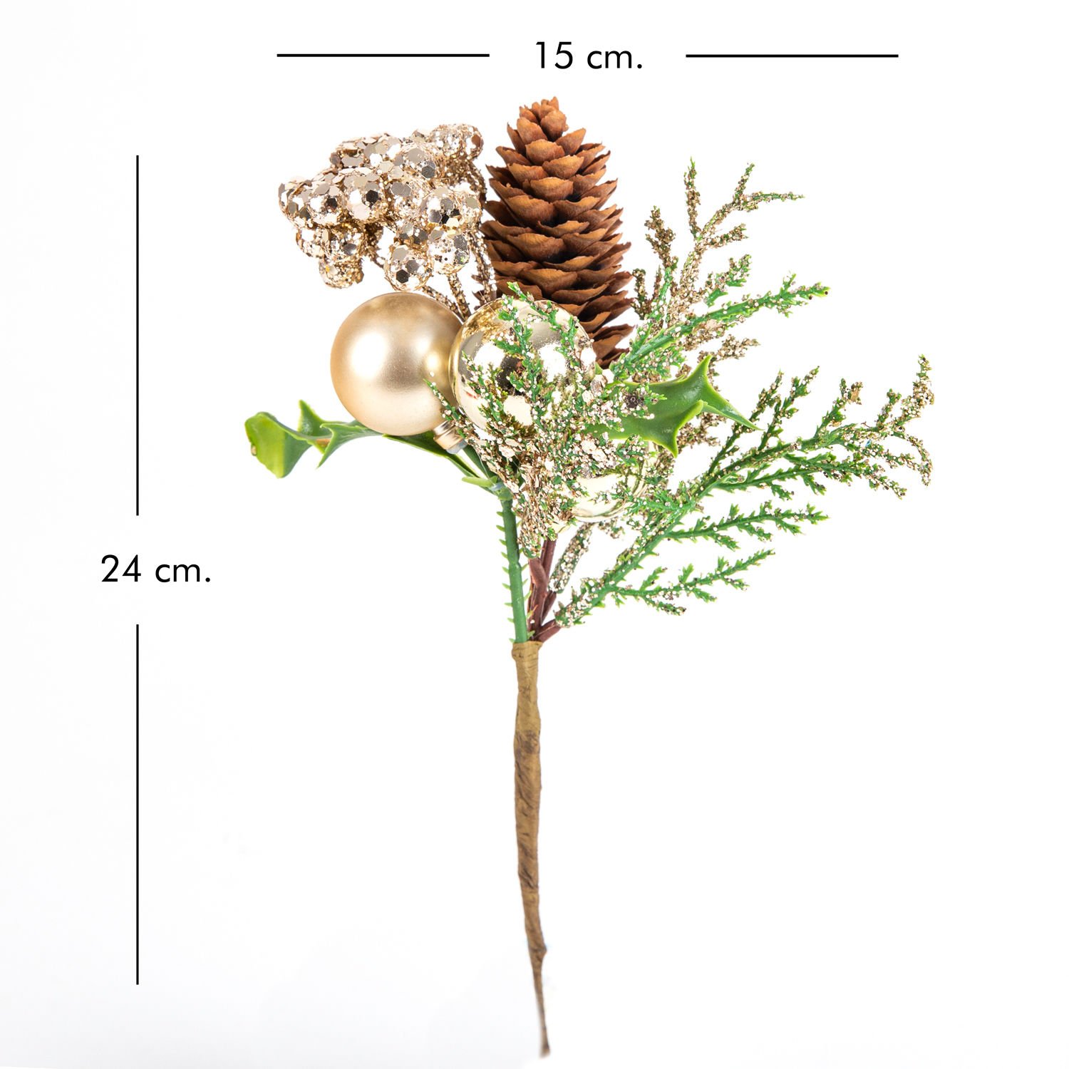 Yılbaşı Süsü Pike Kozalaklı Gold Toplu Berry Gold 15 x 24 Cm.
