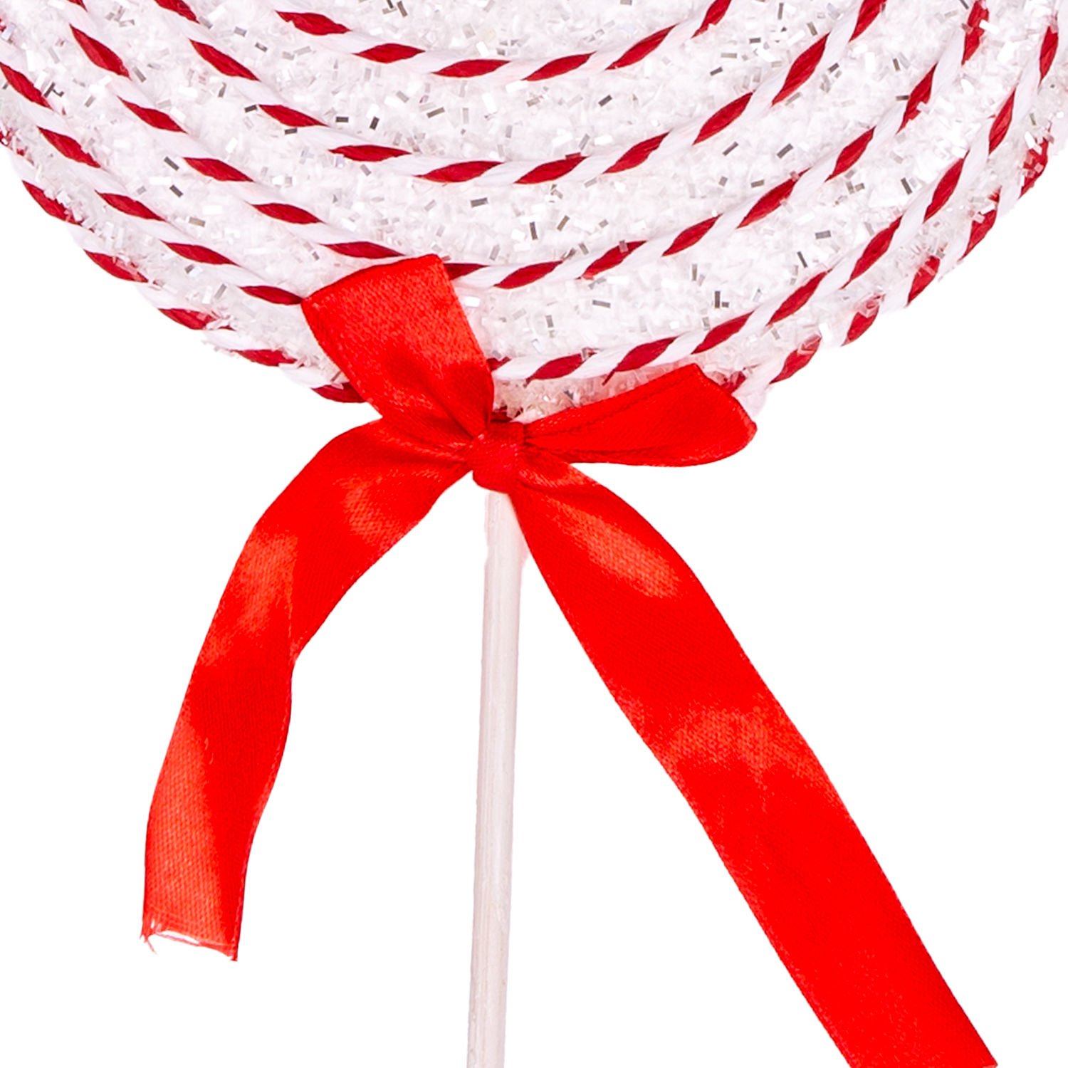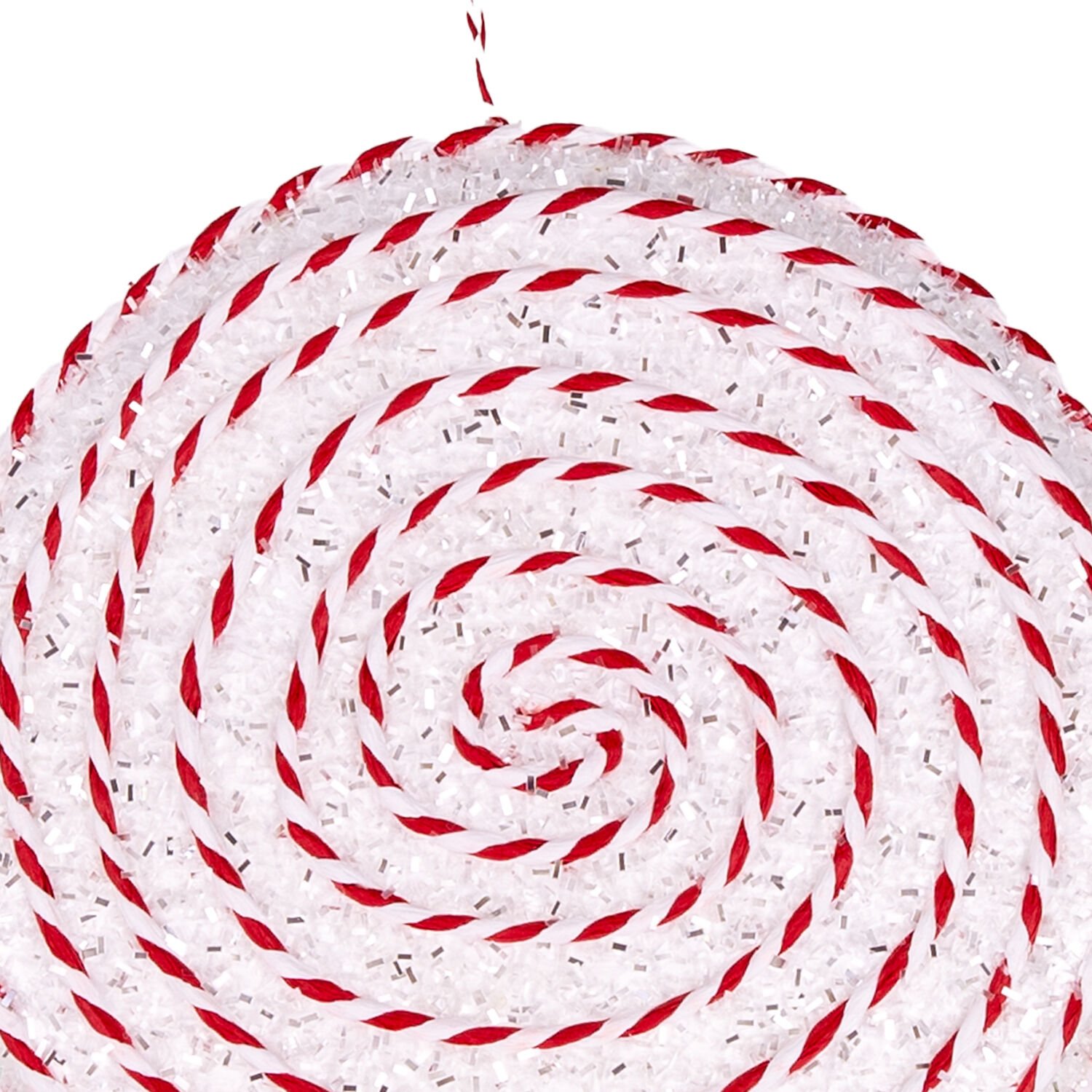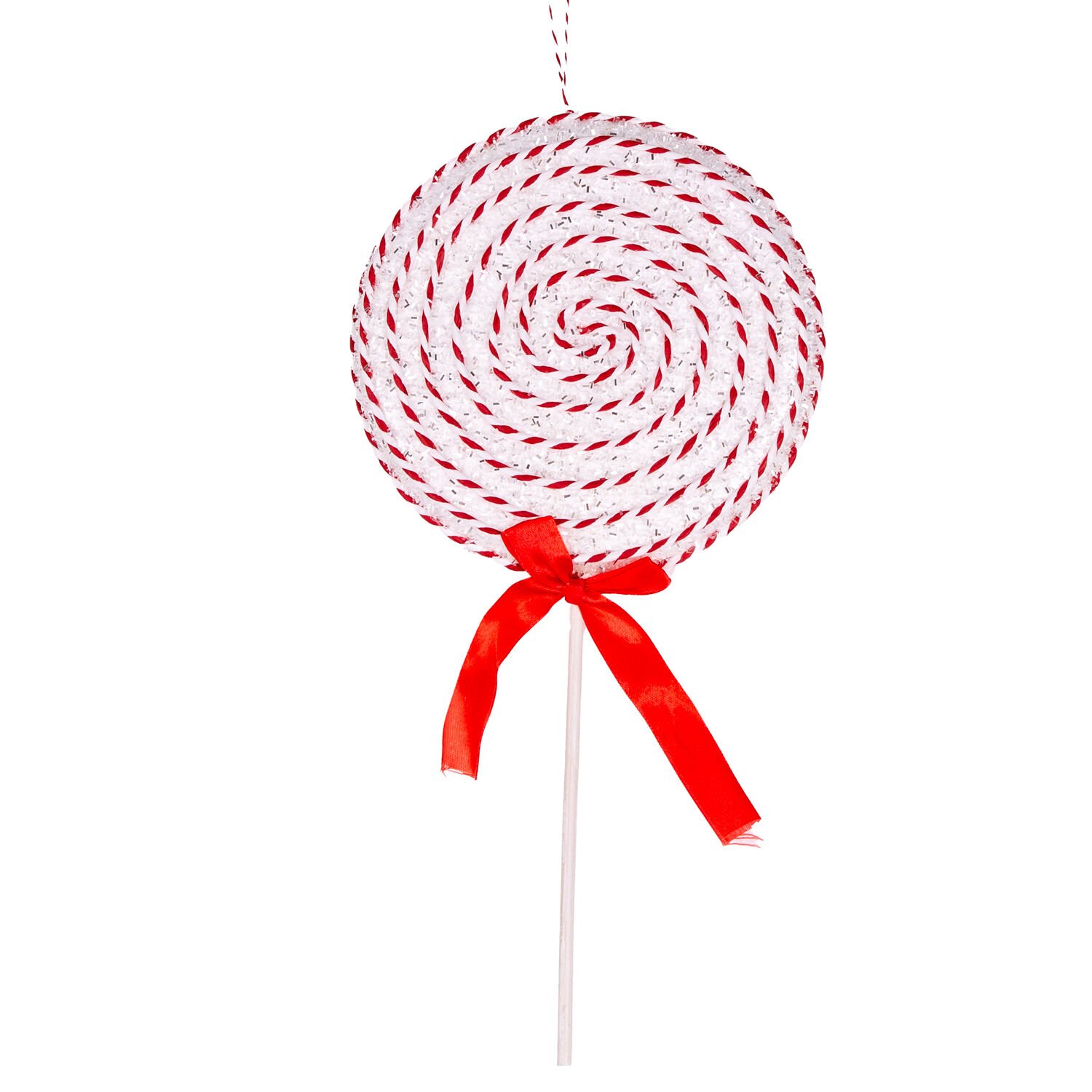 Yılbaşı Süsü, Şeker, Kurdelalı, Spiral İp Detaylı, Kırmızı-Beyaz - 19x38 cm