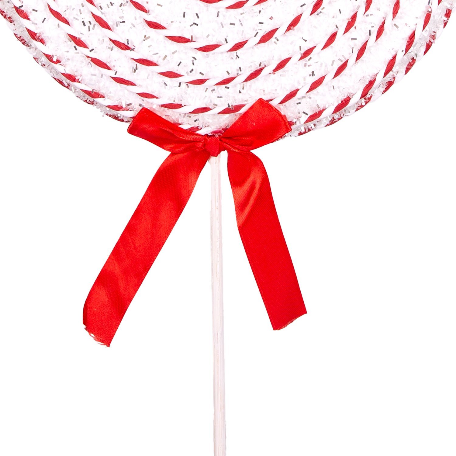 Yılbaşı Süsü, Şeker, Kurdelalı, Spiral İp Detaylı, Kırmızı-Beyaz - 24x49 cm