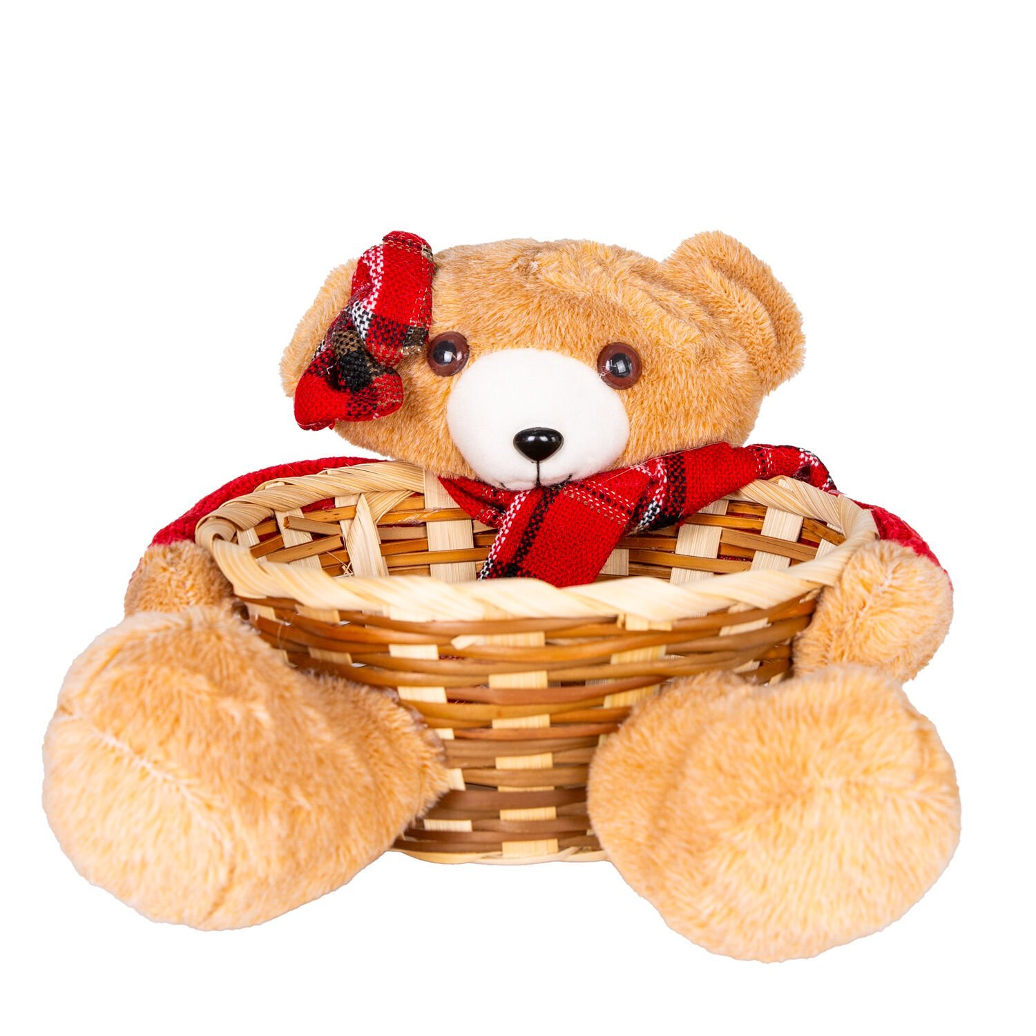 Yılbaşı Süsü, Sepet, Ayıcıklı, Kahverengi - 21x14 cm