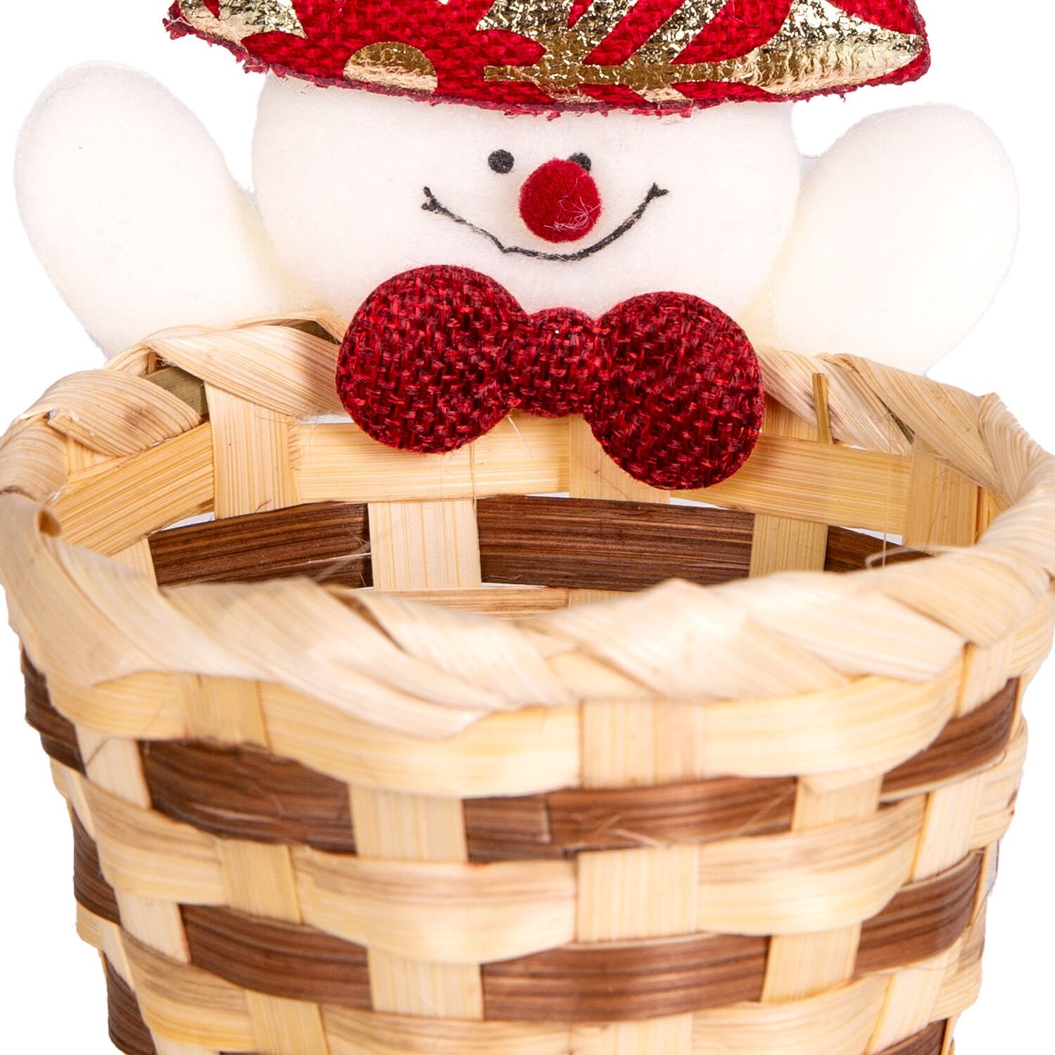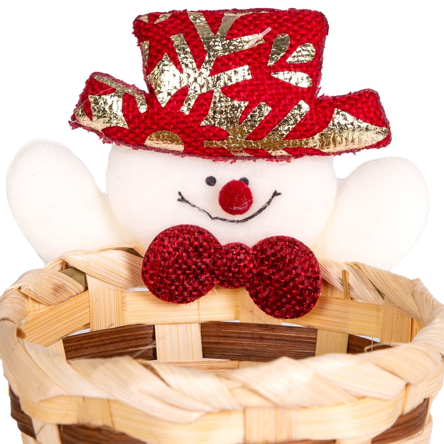 Yılbaşı Süsü, Sepet, Kardan Adam Figürlü, Kahverengi-Kırmızı - 13x14 cm