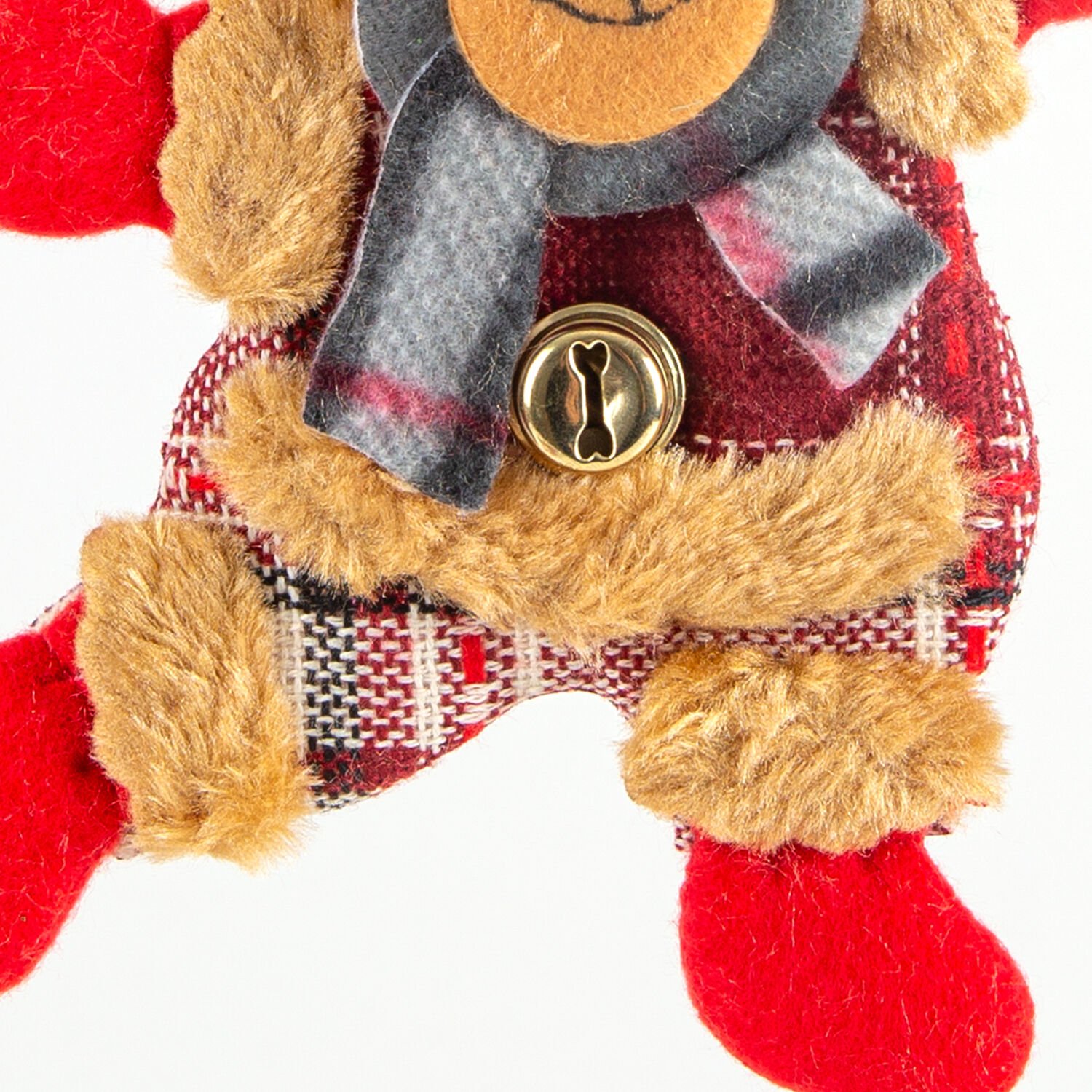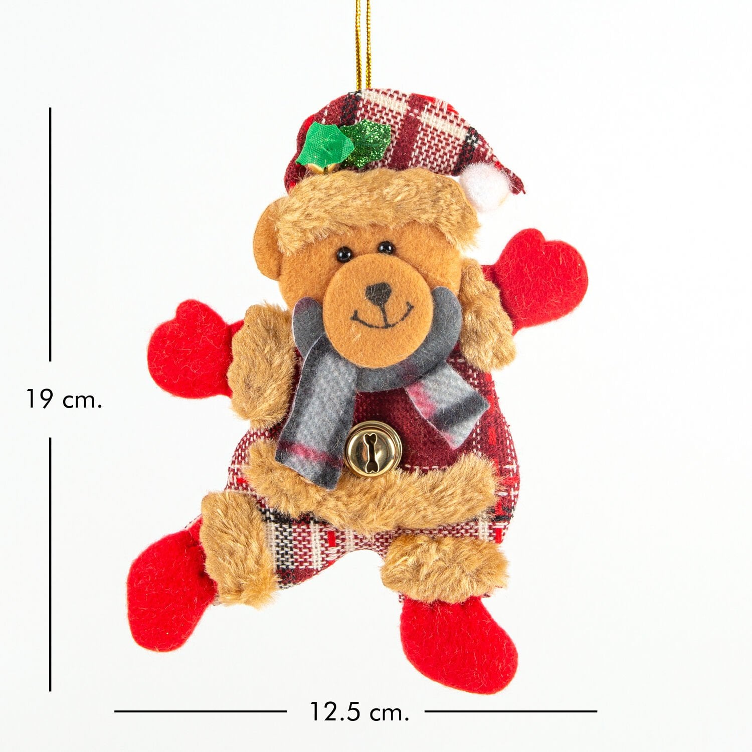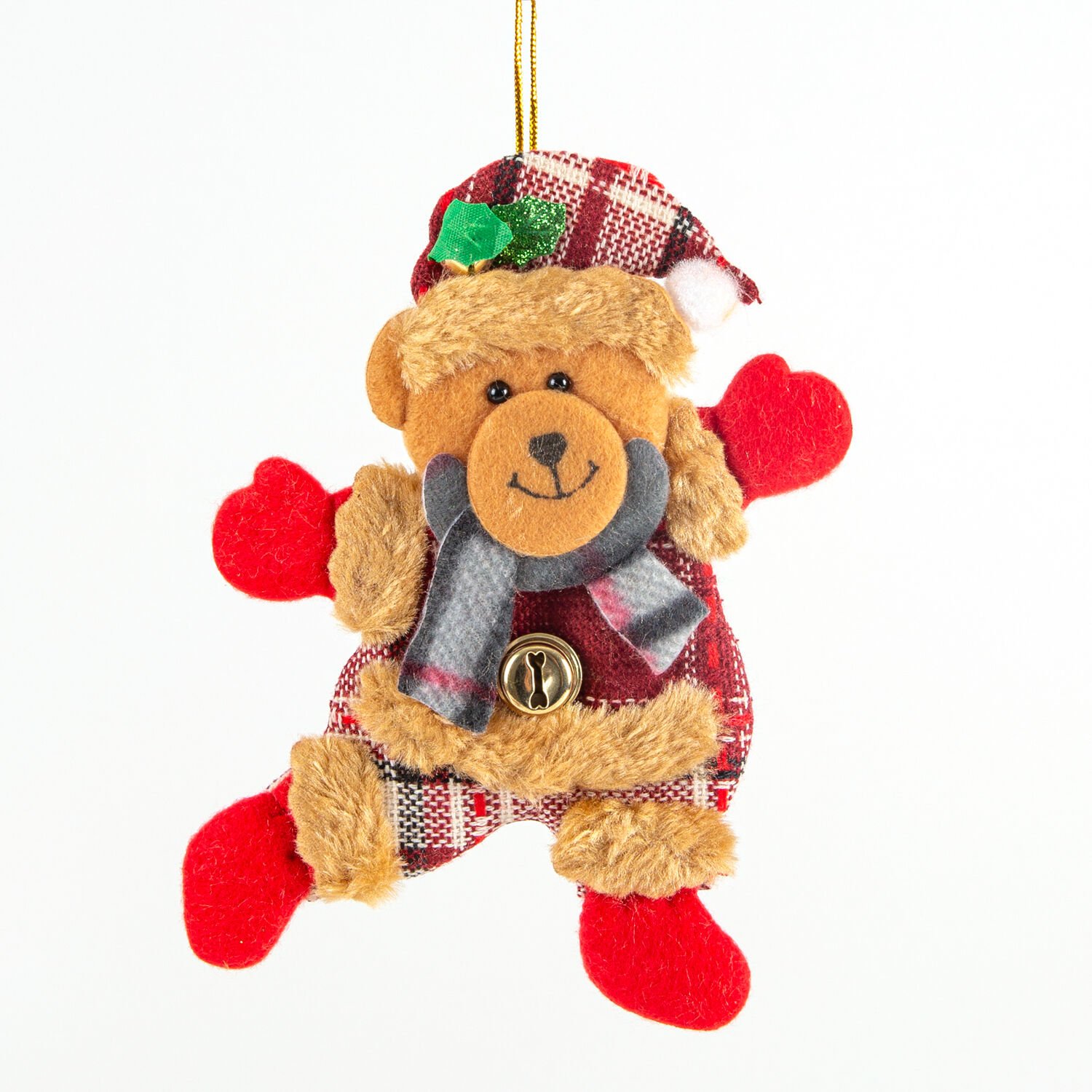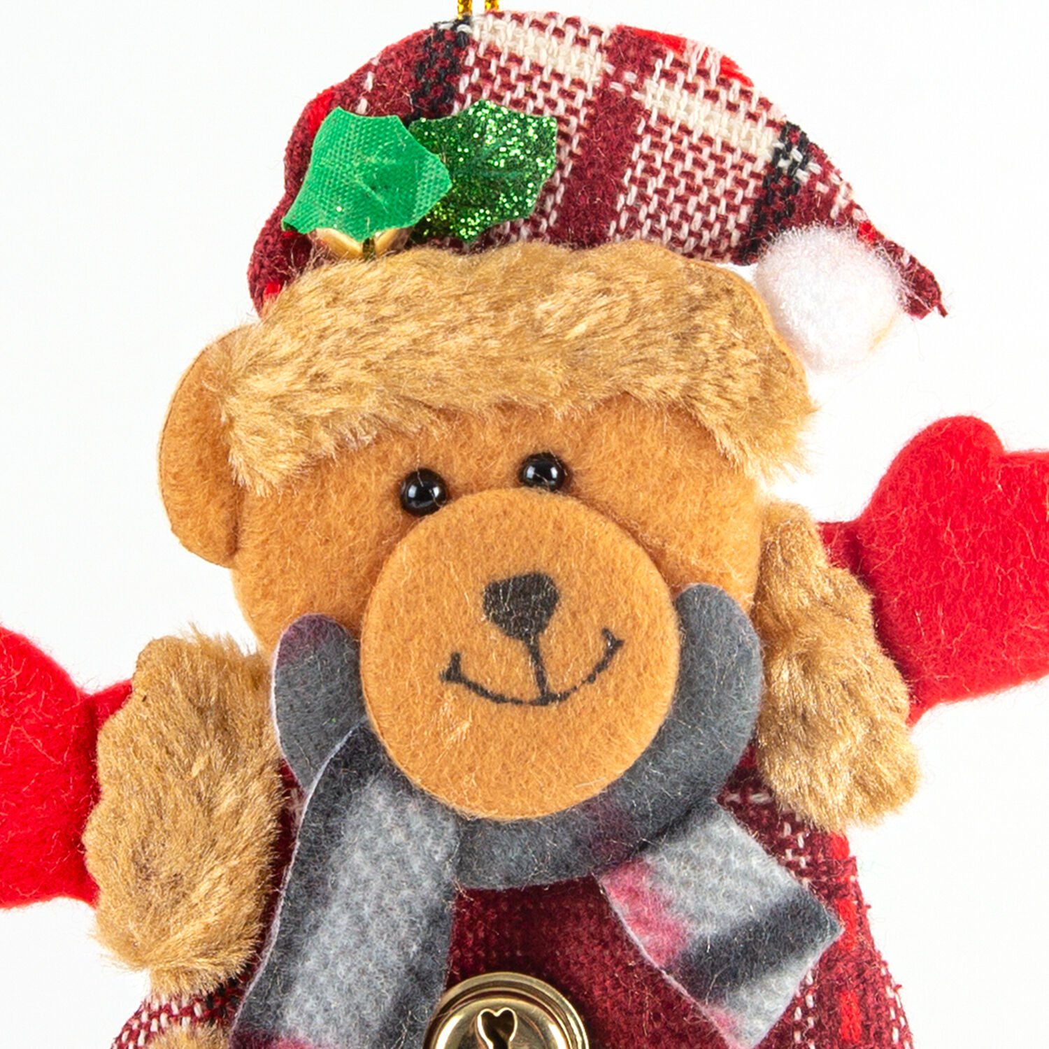 Yılbaşı Ağaç Süsü Sevimli Ayıcık Çıngıraklı Kahverengi-Kırmızı 12,5 x 19 Cm.
