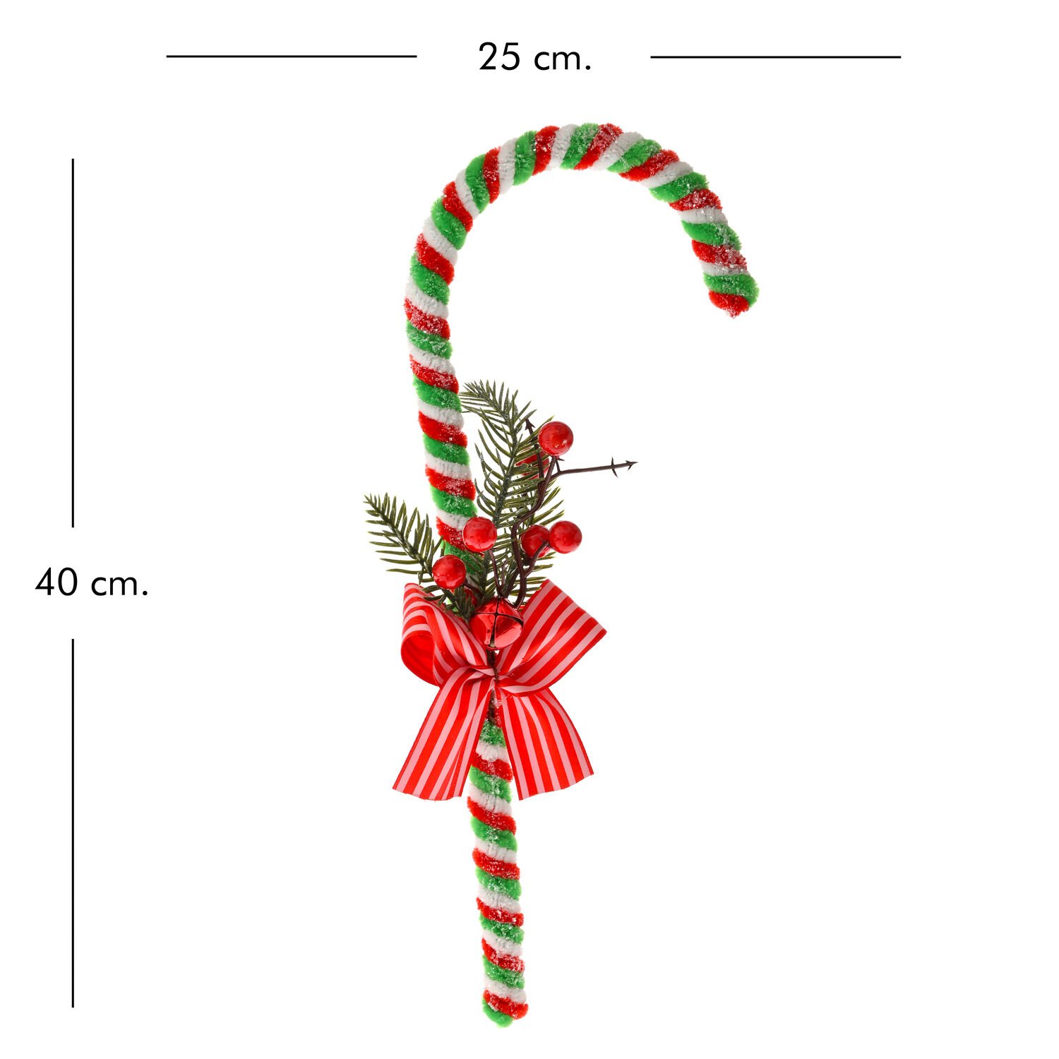 Yılbaşı Süsü, Yeşil Baston Şeker, Kırmızı-Yeşil - 25 x 40 cm