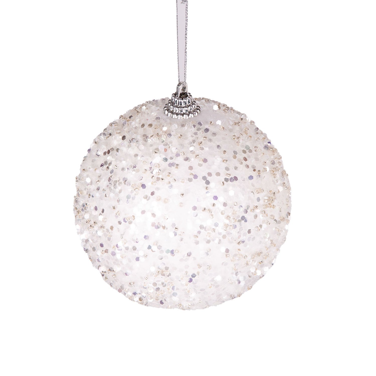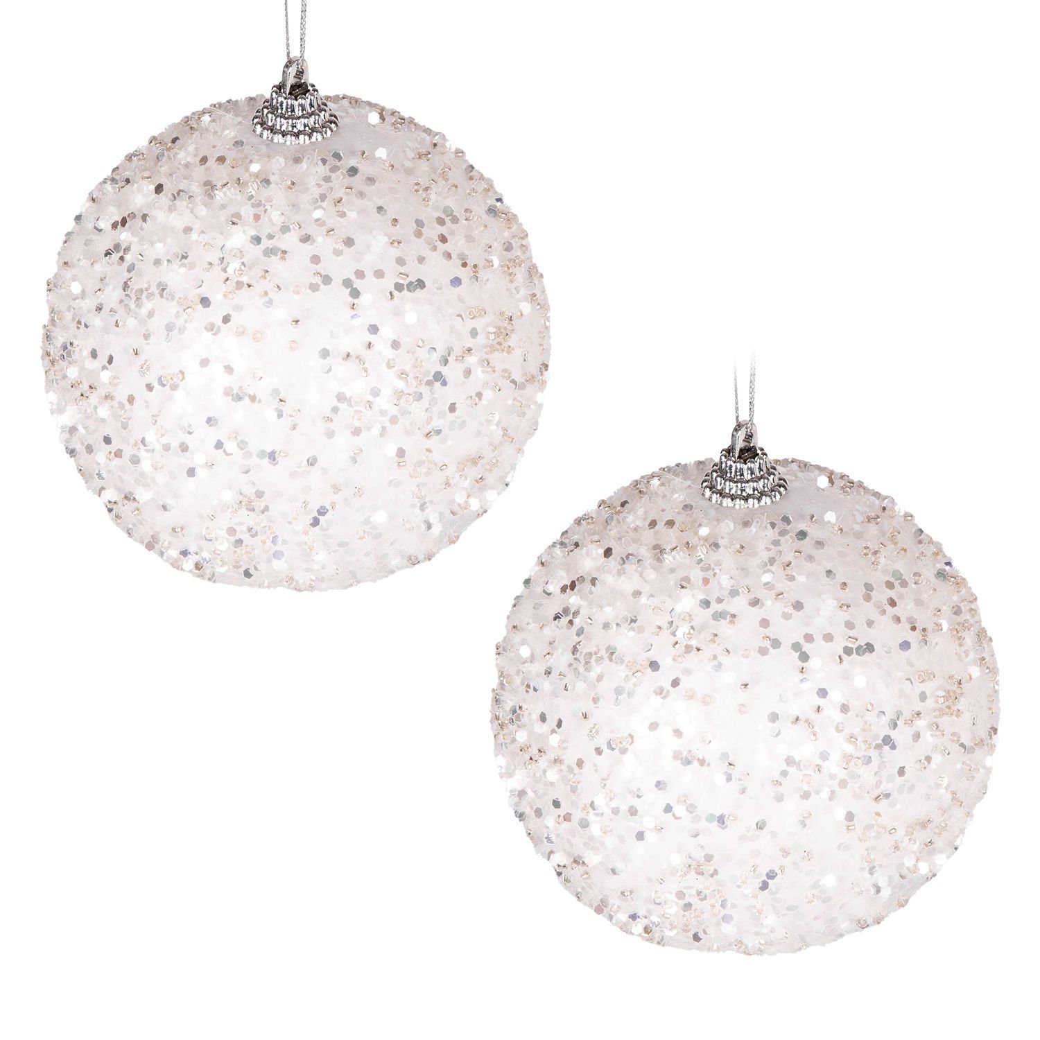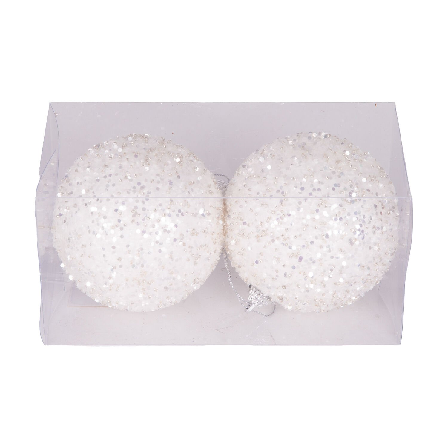 Yılbaşı Süsü, Yılbaşı Topu, Beyaz - 2'li Paket, 10 cm