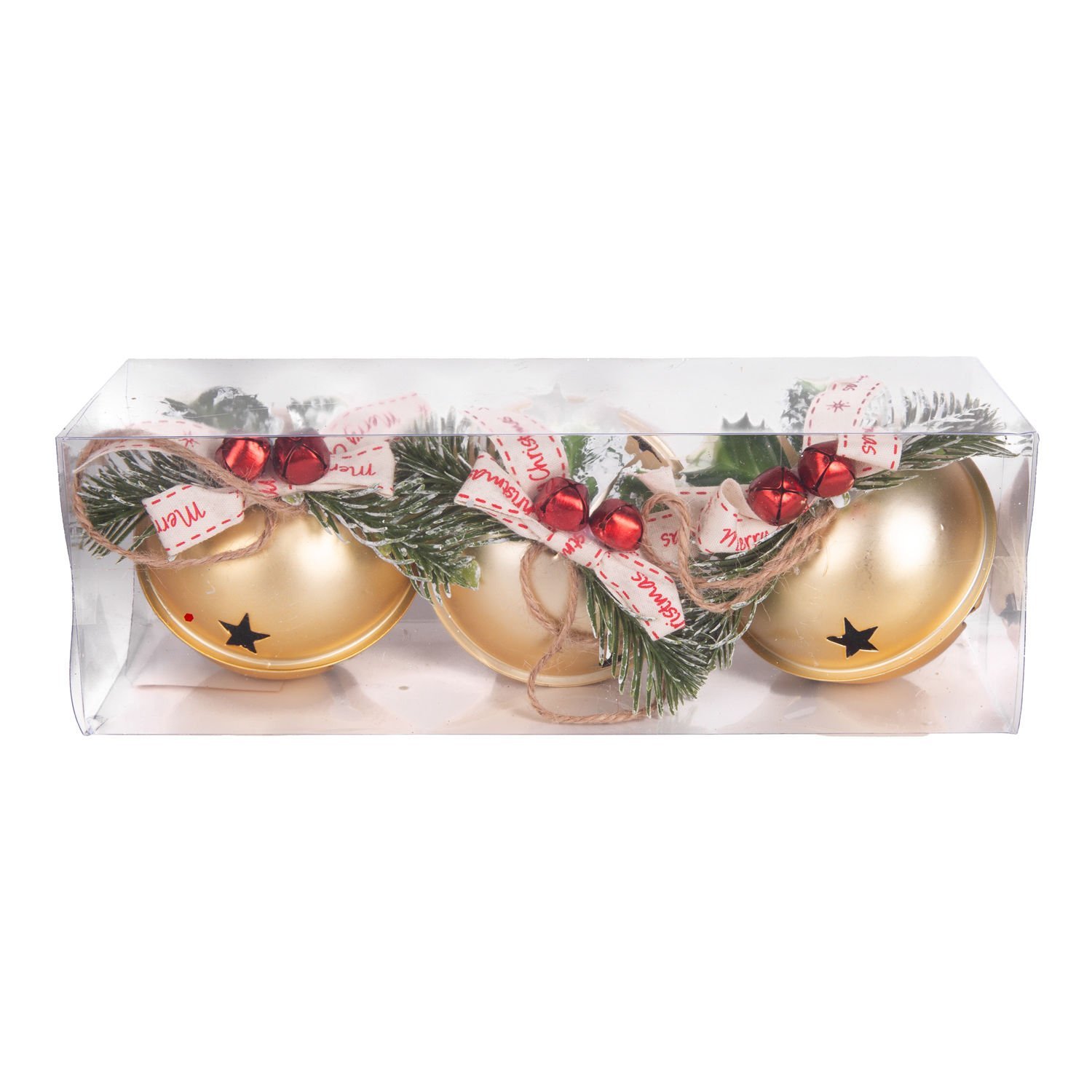 Yılbaşı Süsü, Yılbaşı Topu, Çıngıraklı, Gold - 3'lü Set, 8 cm