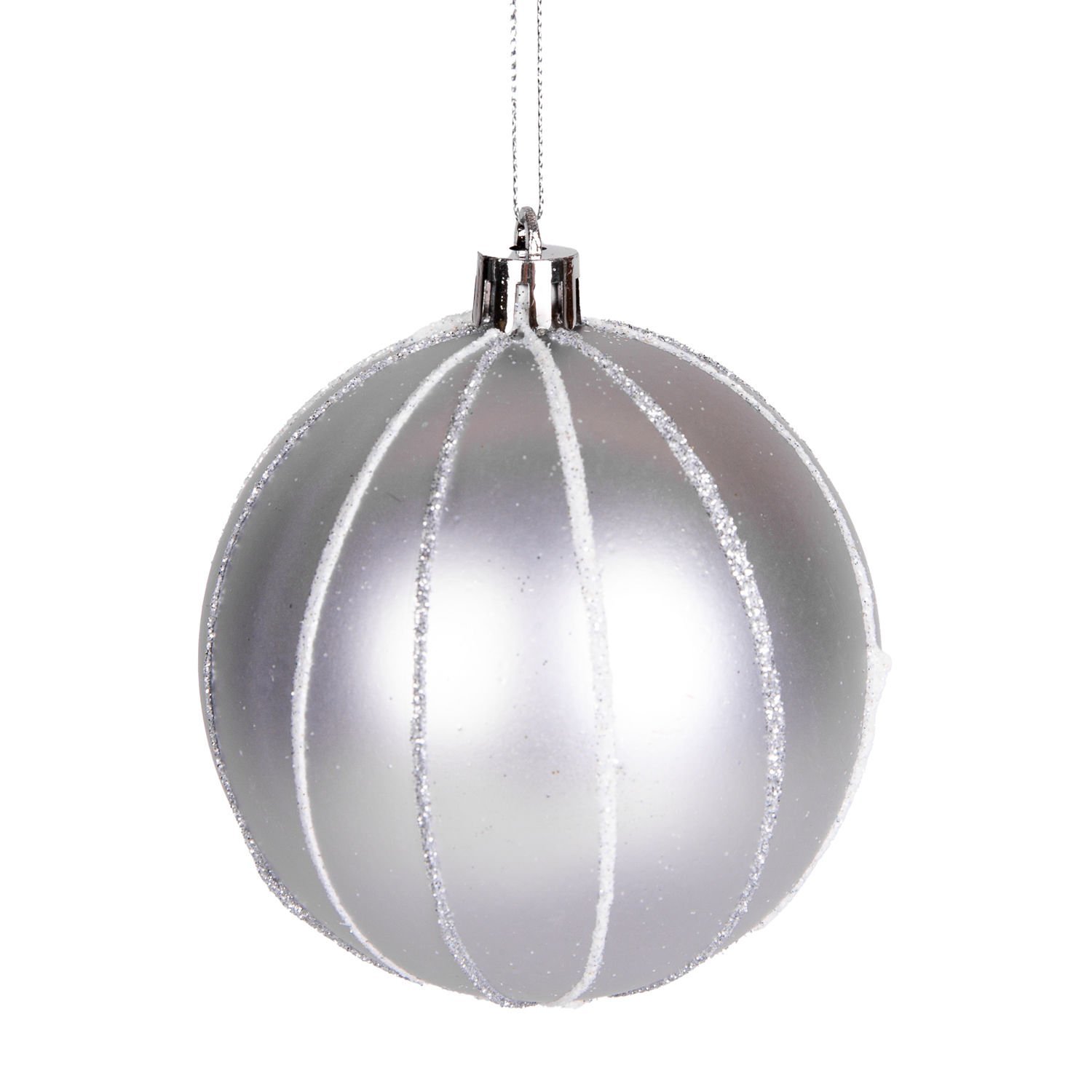 Yılbaşı Süsü, Yılbaşı Topu, Gümüş - 6'lı Paket, 8 cm