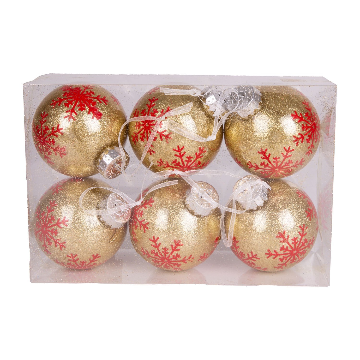 Yılbaşı Süsü, Yılbaşı Topu, Kırmızı Kar Taneli, Gold - 6'lı Paket, 8 cm