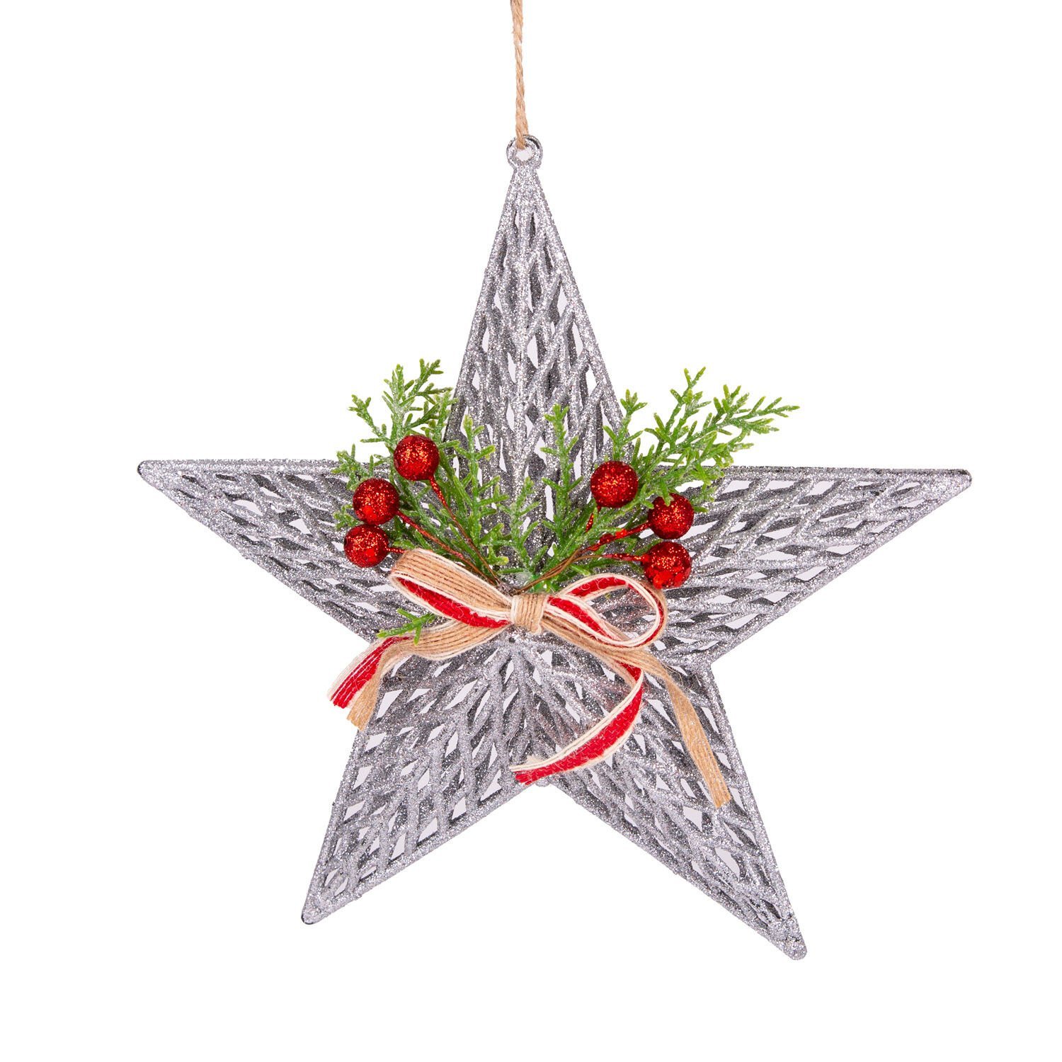 - Paket İçeriği: 1 Adet Gümüş, Fiyonk ve Berry Detaylı Yılbaşı Yıldız Süsü