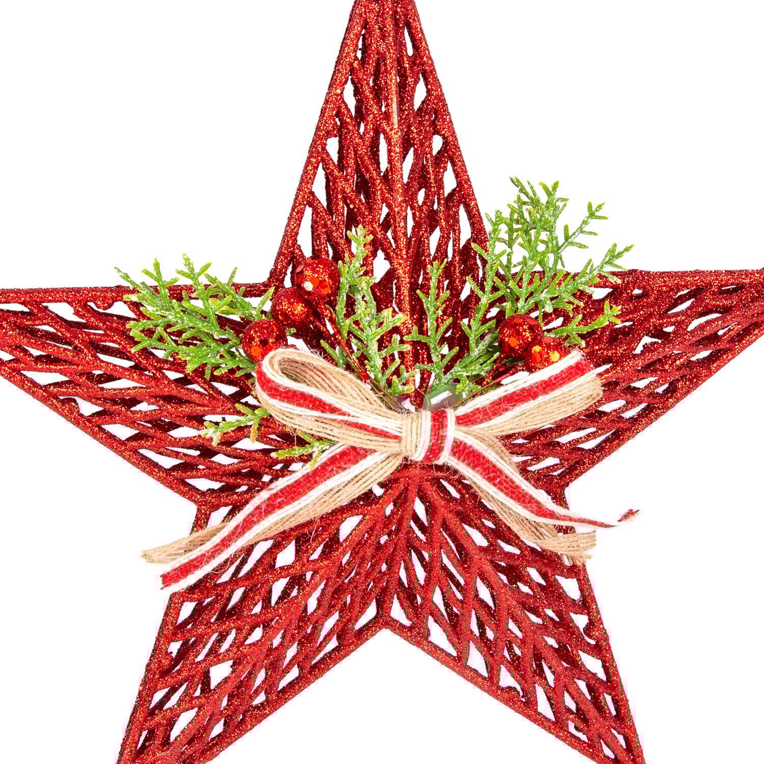 Yılbaşı Süsü, Yıldız, Yılbaşı Dekorlu, Fiyonklu, Berryli, Kırmızı - 28x29 cm