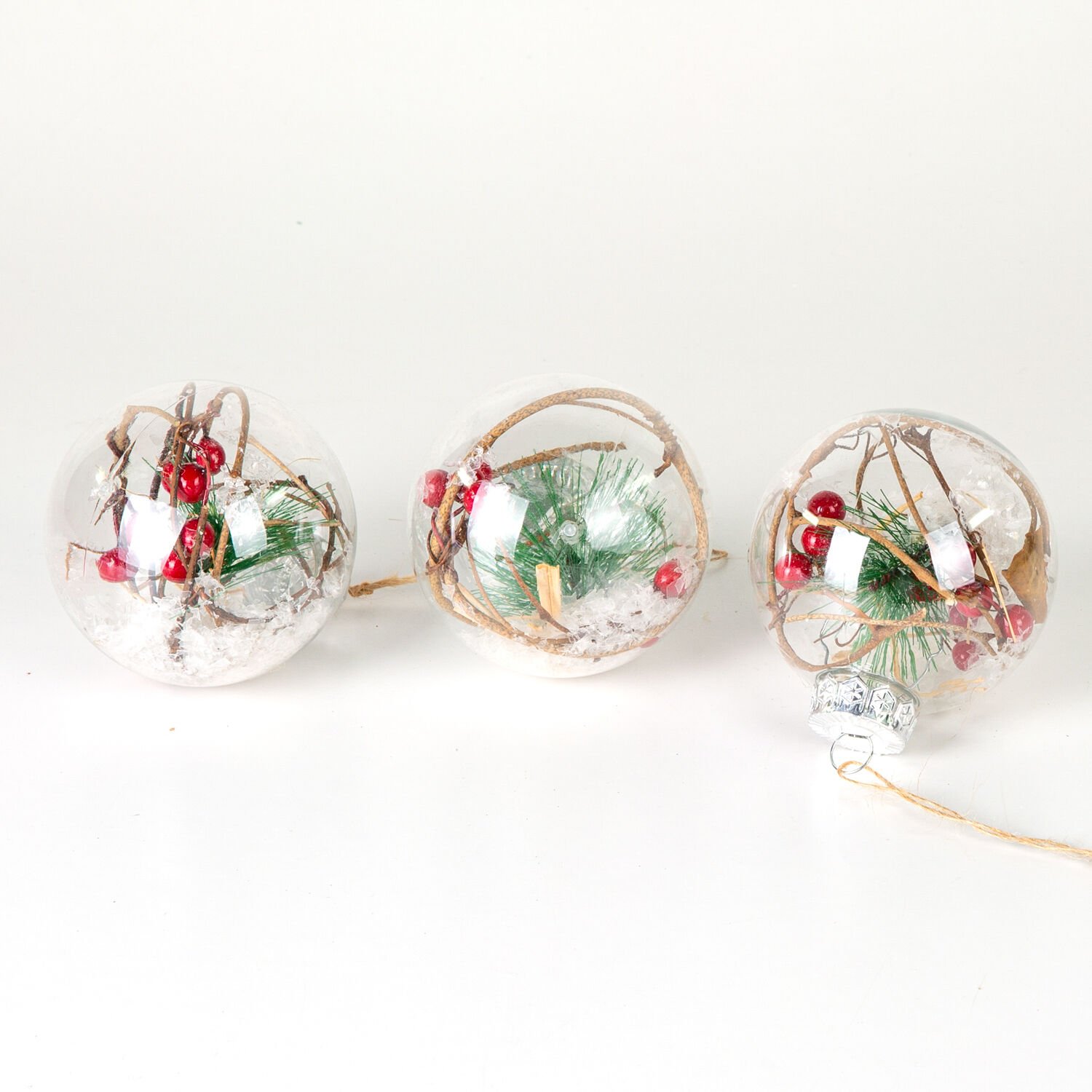 Buz ve Berry Dekorlu Yılbaşı Topu 3'lü Paket Şeffaf 8x8 Cm.