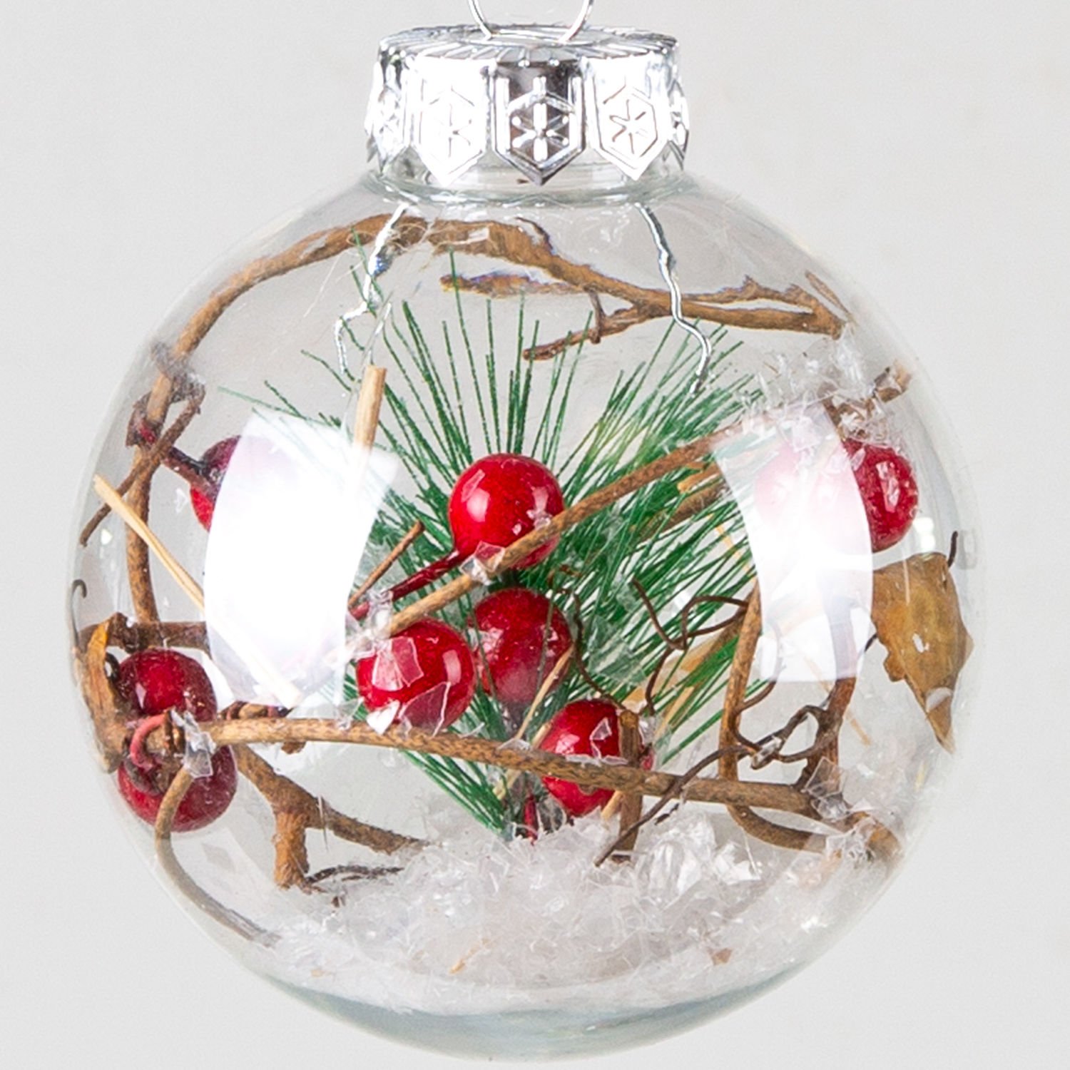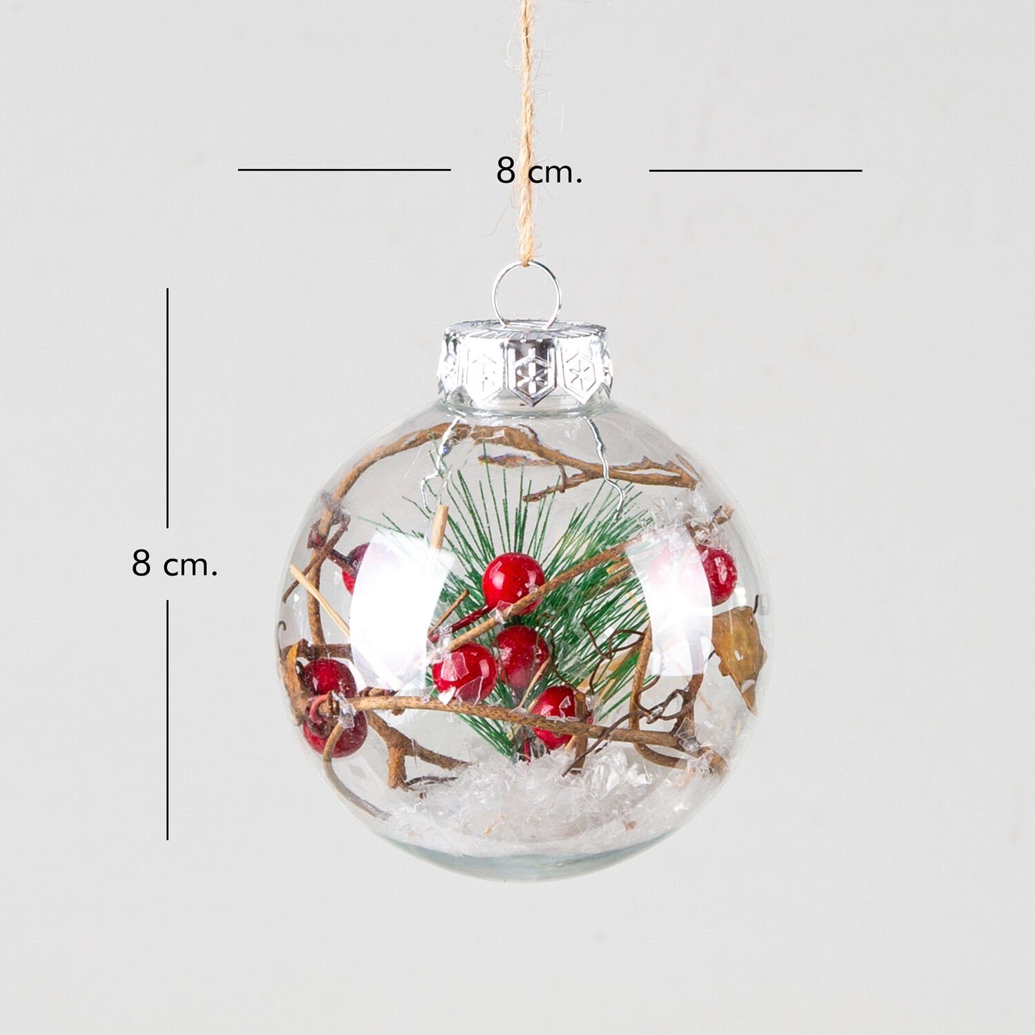 Yılbaşı Topu, Buz ve Berry Dekorlu, Şeffaf - 3'lü Paket, 8x8 cm
