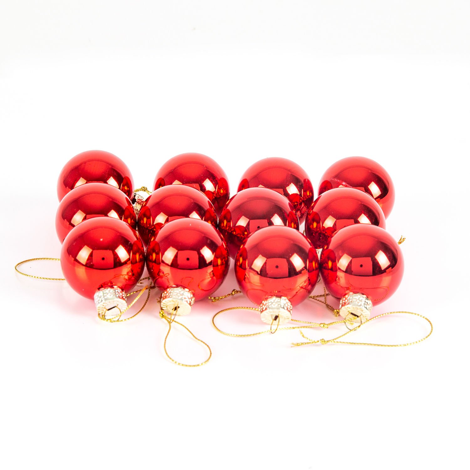 Yılbaşı Topu Cam Lüks 12'li Kutulu Parlak Kırmızı 4 x 4 Cm.